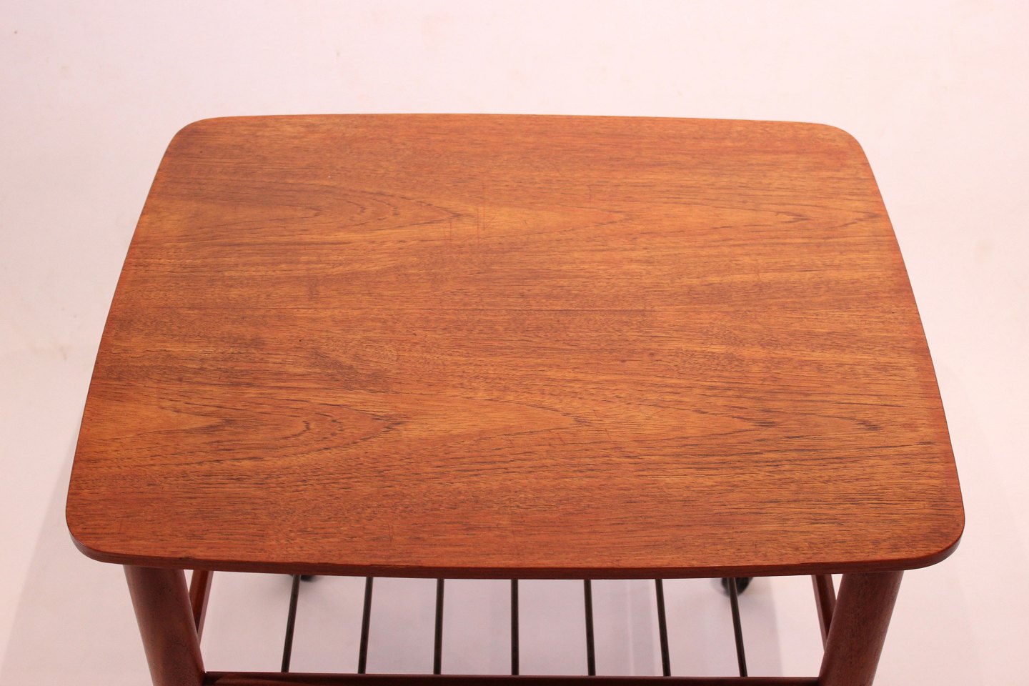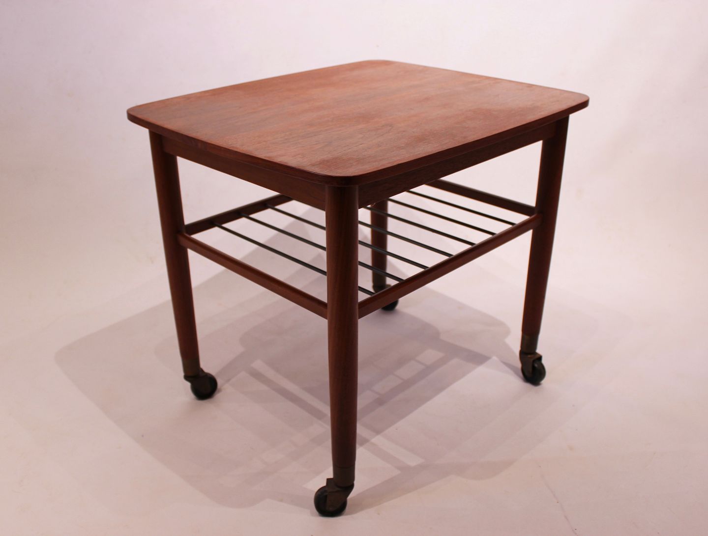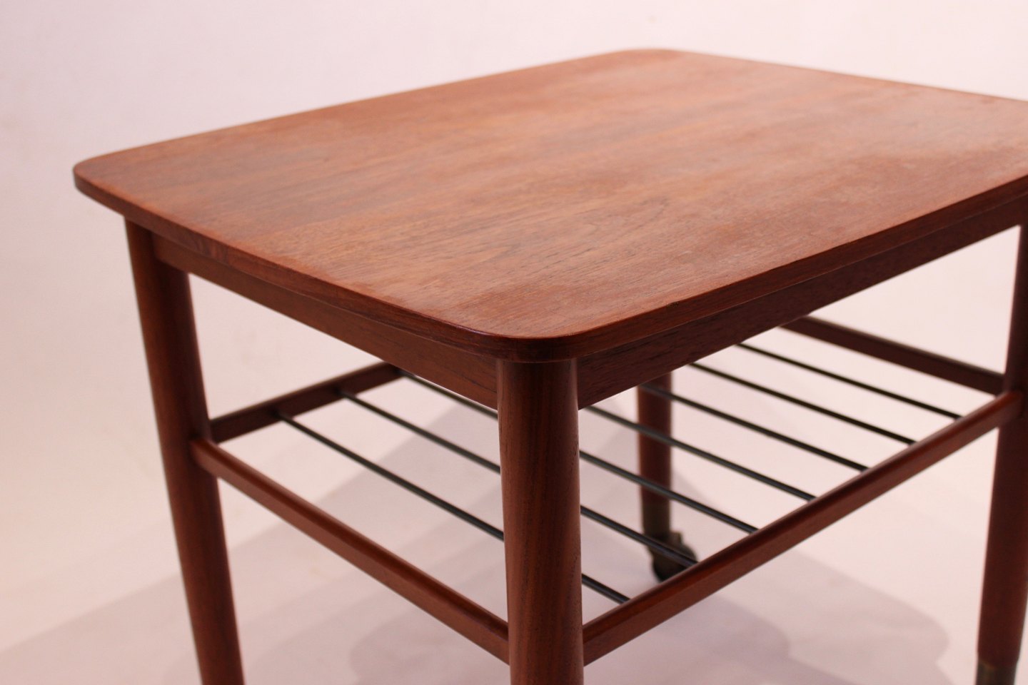 Side table on wheels with shelf of teak and of danish design from the 1960s. The table is in great vintage condition.