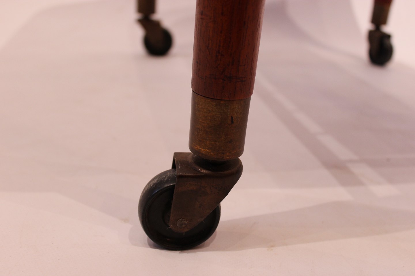 Side table on wheels with shelf of teak and of danish design from the 1960s.