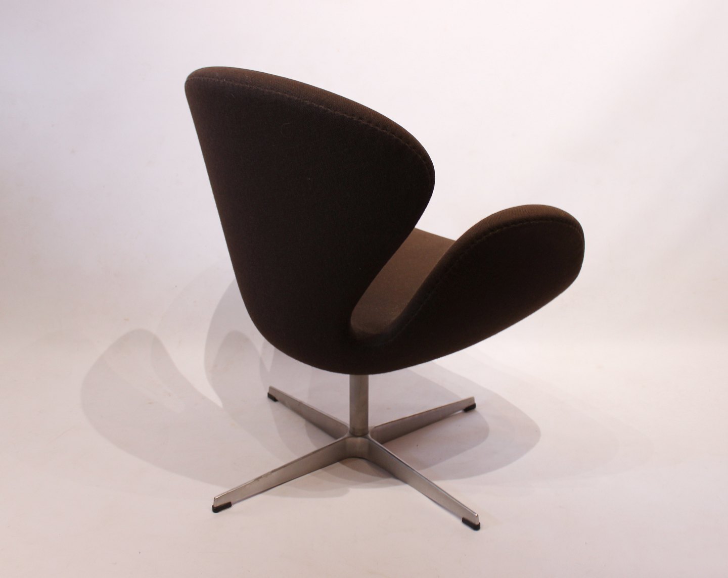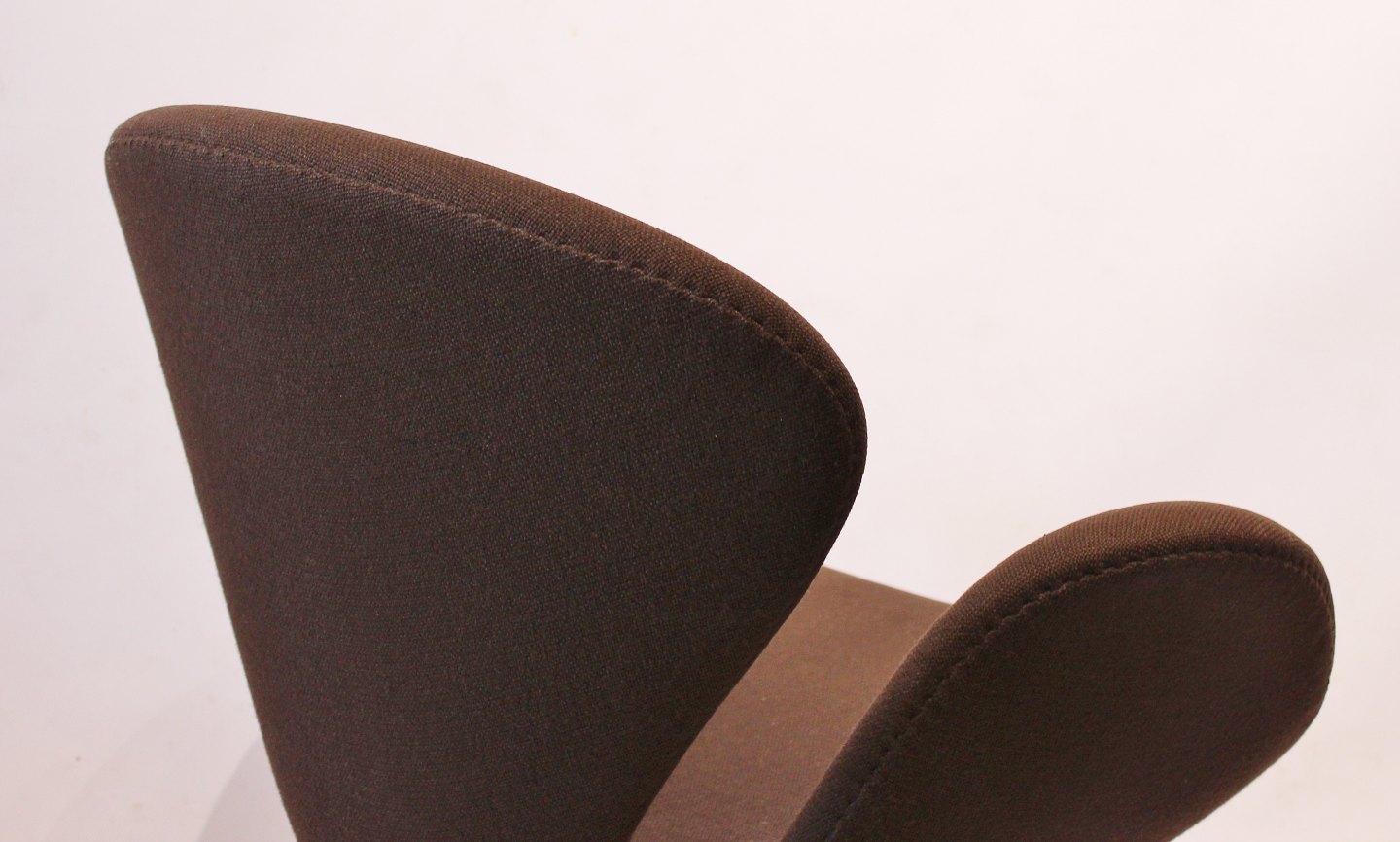 SoldThe Swan chair, model 3320, and stool, model 3127, designed by Arne Jacobsen in 1958 and manufactured by Fritz Hansen in 2001/2003. Both are upholstered with dark brown wool fabric and in great vintage condition.