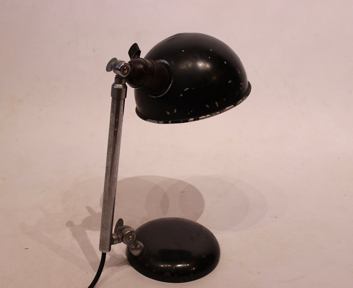 SoldOffice and/or worklamp of black painted metal, adjustable and from the 1940s. The lamp is in good vintage condition.