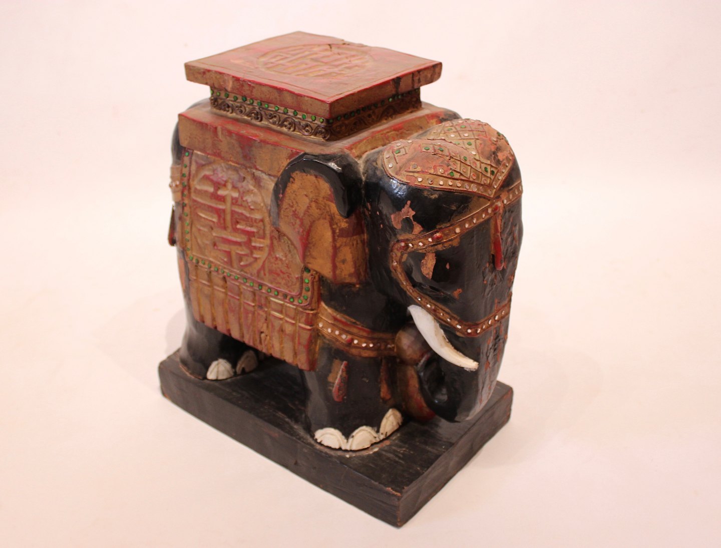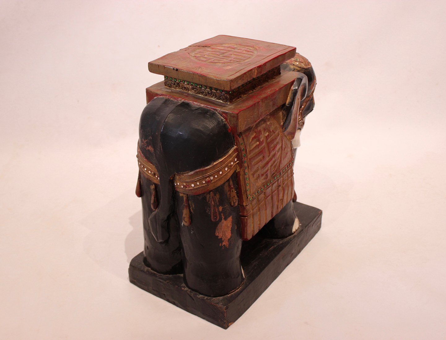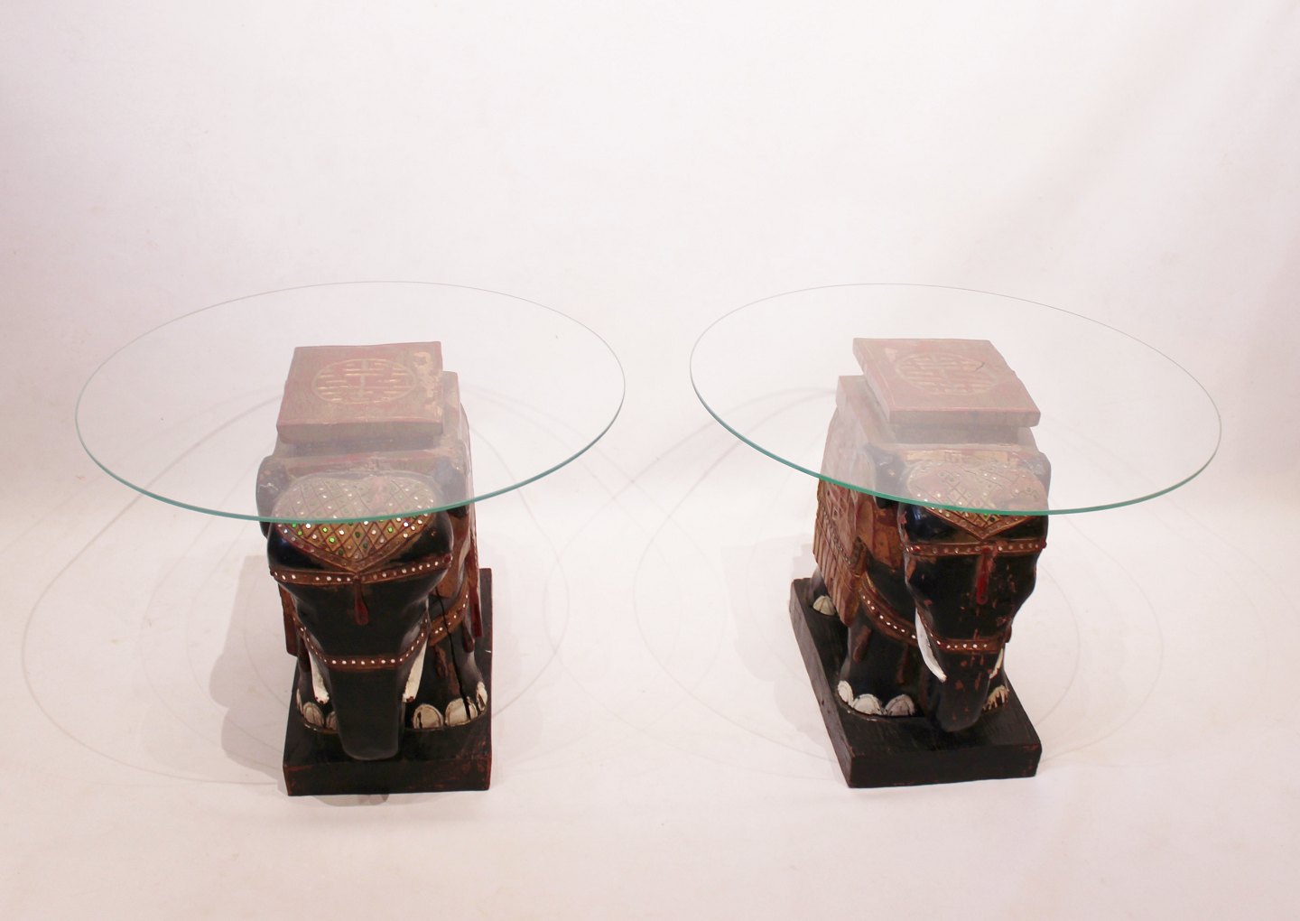 A pair of sidetables with glass plate and bottom of chinese elephants of orignal painted wood and patina from around the 1880s. The tables are in great antique condition.