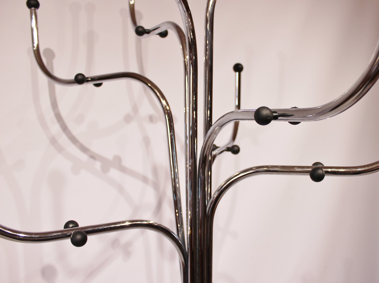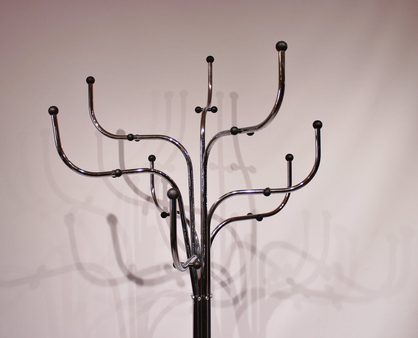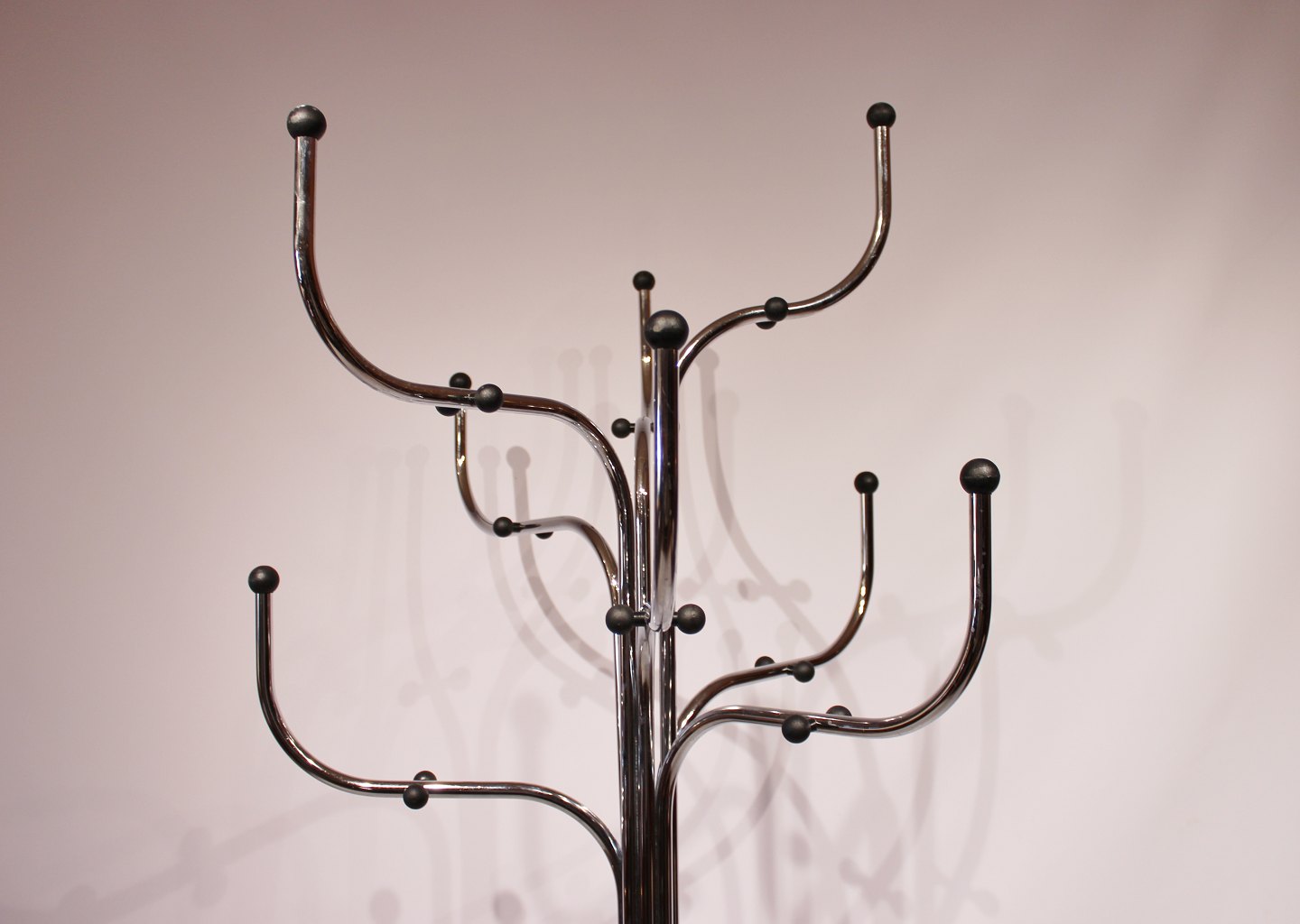 Coat stand of stainless steel with nine arms by Sidse Werner and Fritz hansen in the 1970s.