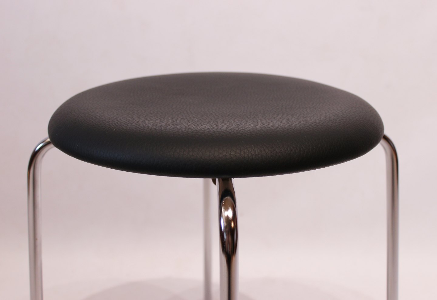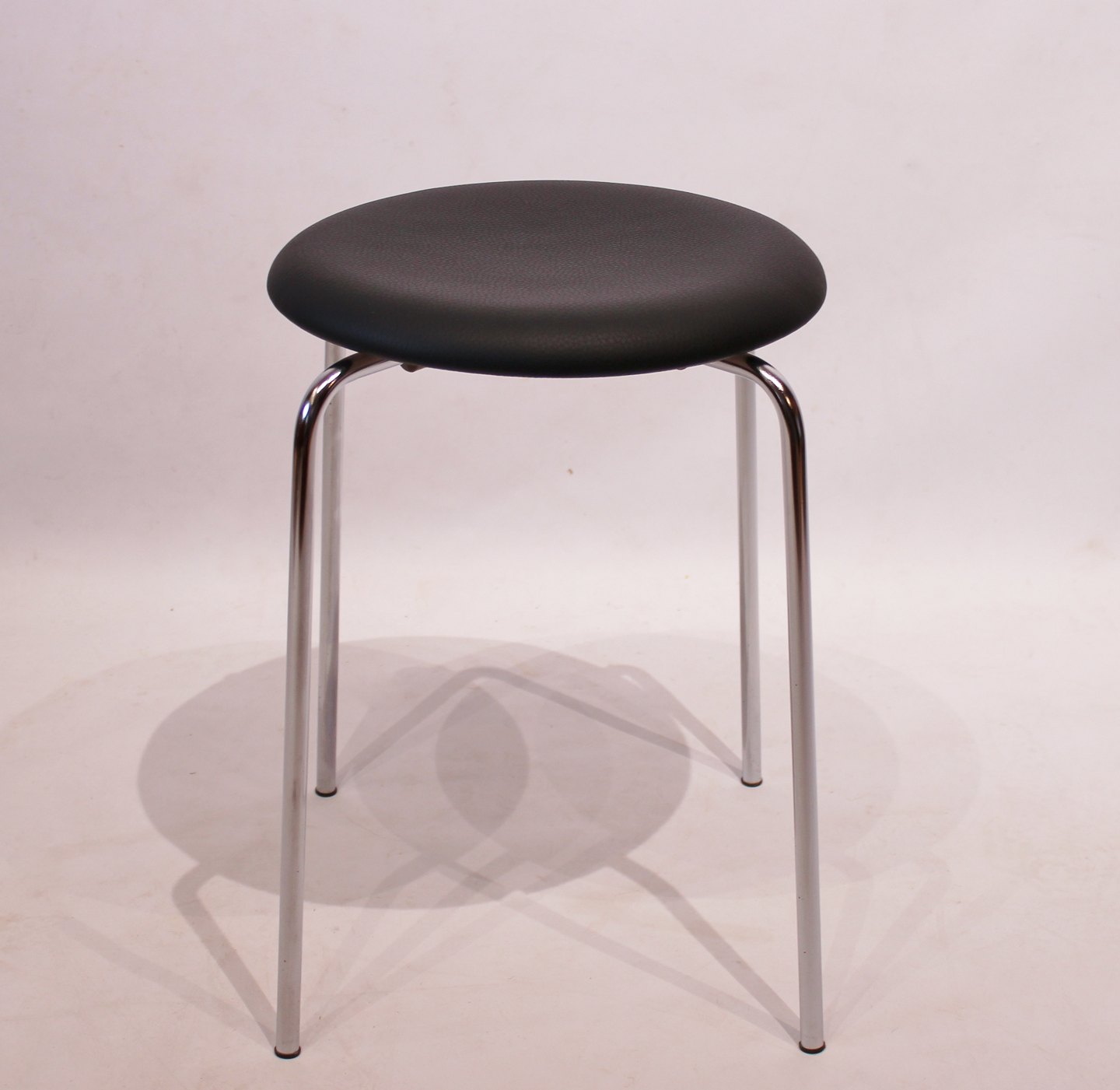 Dot stools in black leather are an elegant and timeless accessory for any modern home. Designed by the renowned Danish architect Arne Jacobsen and produced by the renowned furniture company Fritz Hansen in 1971, these stools carry with them the aesthetics of Scandinavian design tradition.