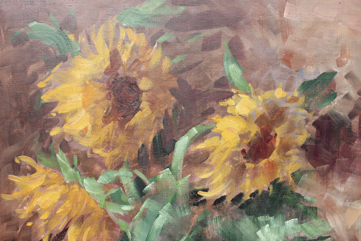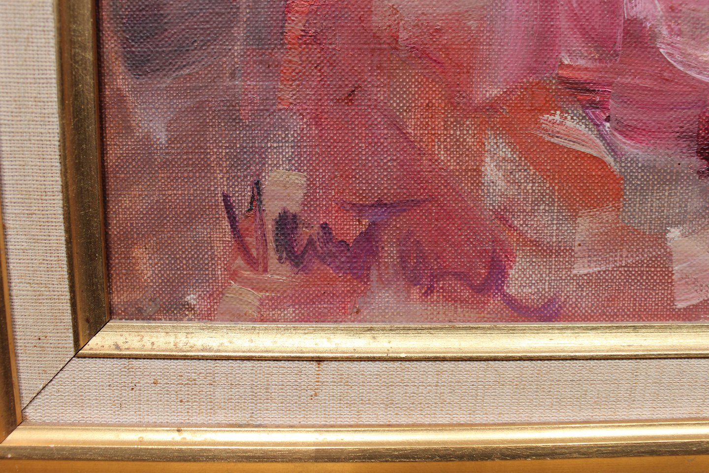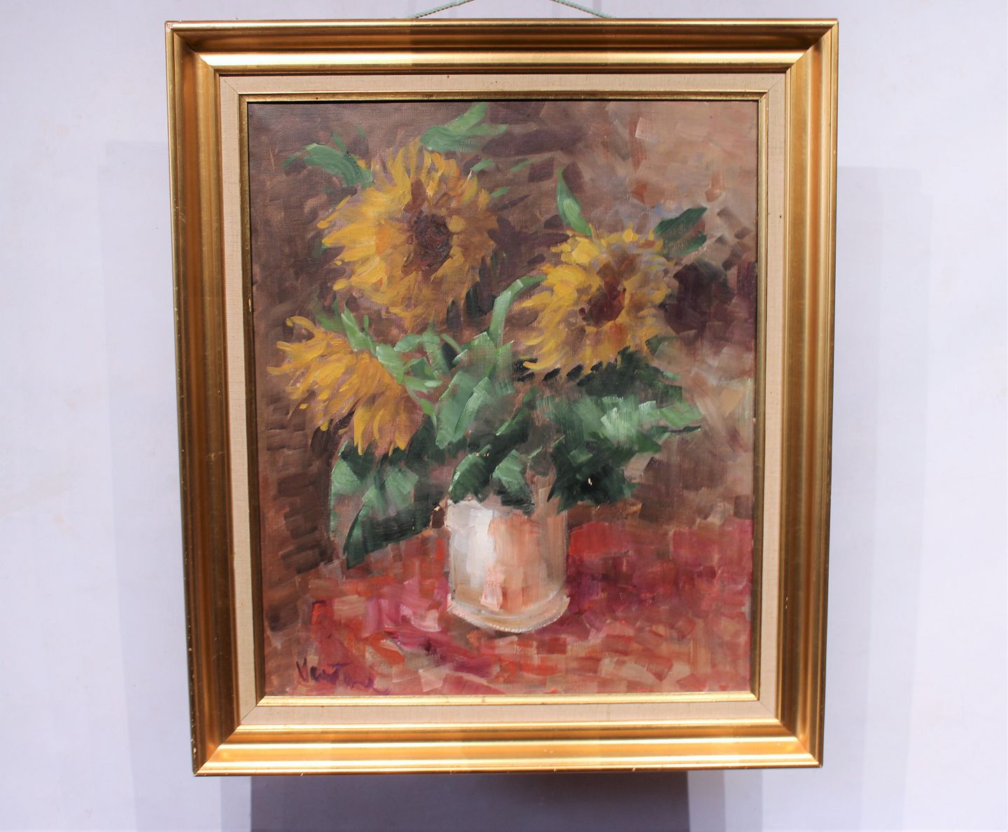 SoldOil painting with motif of sunflowers in gilded frame, by Mogens Vantore. The painting is in great vintage condition and from the 1940s.