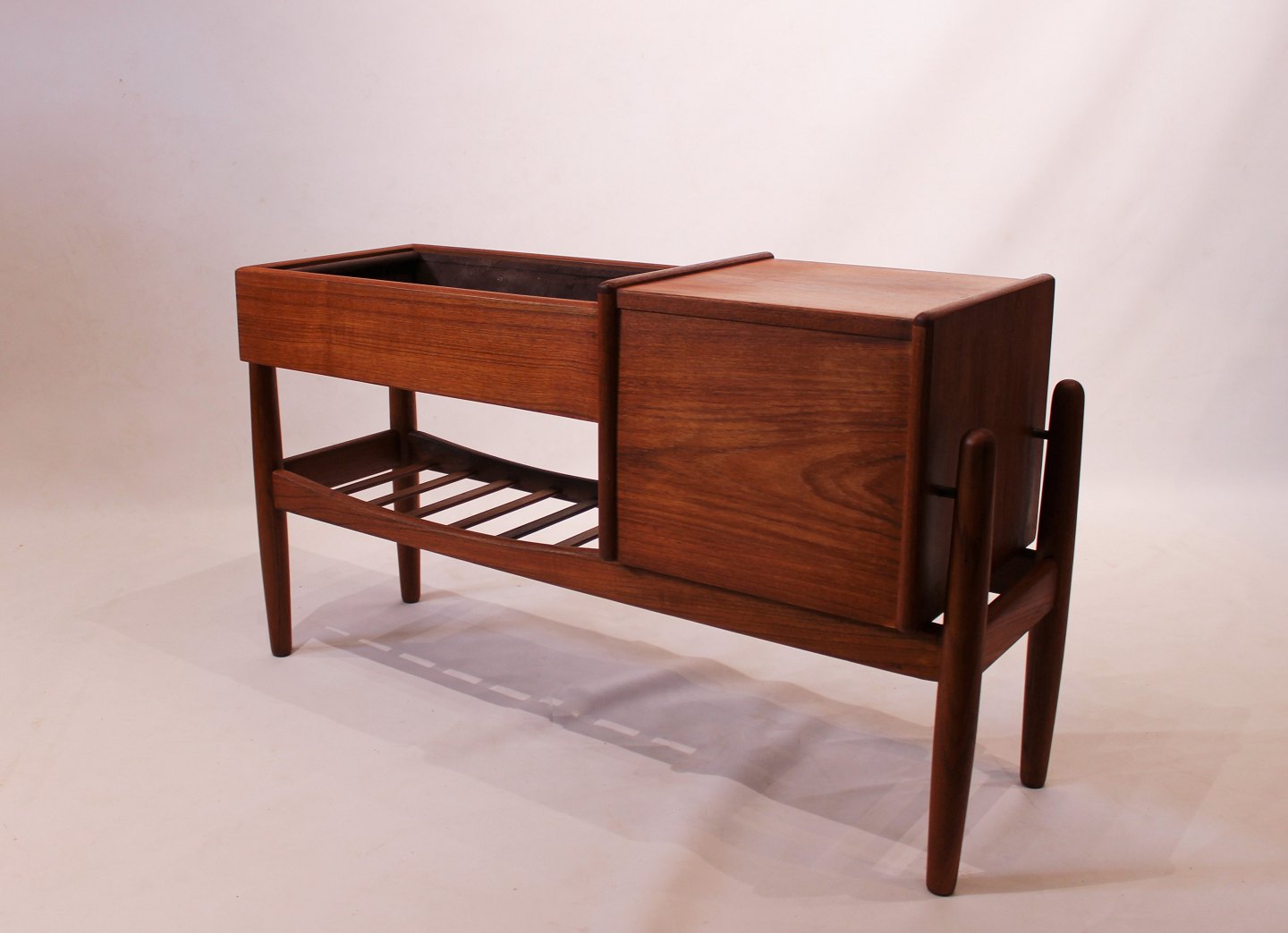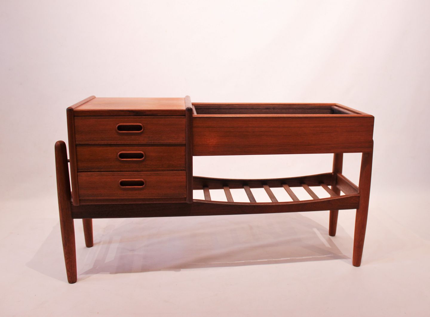 Small sideboard of teak with drawers and shelves designed by Arne Vodder. The sideboard is of danish design from the 1960s and in great vintage condition.