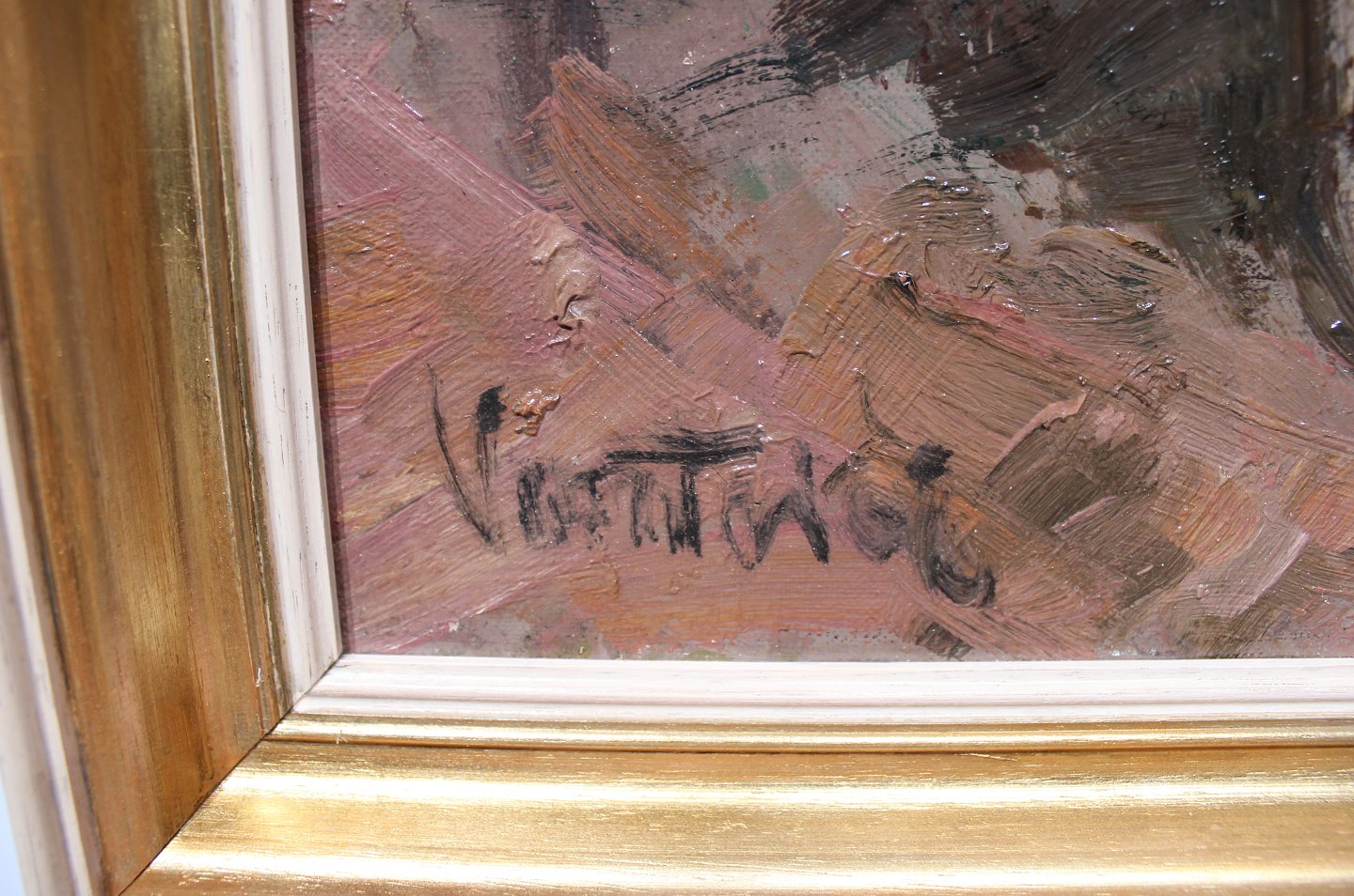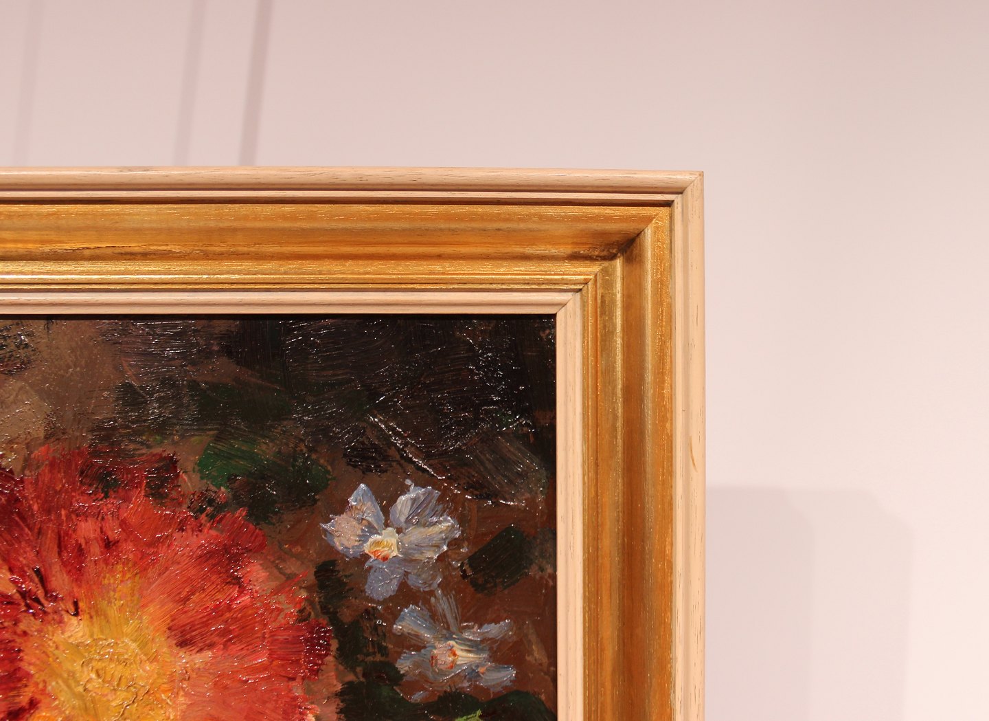 SolgtOliemaleri på lærred med motiv af blomster i guld malet ramme. Maleriet er malet af den dansk kunster Hans Christian Vantore, 1861-1928, København og er i flot brugt stand.