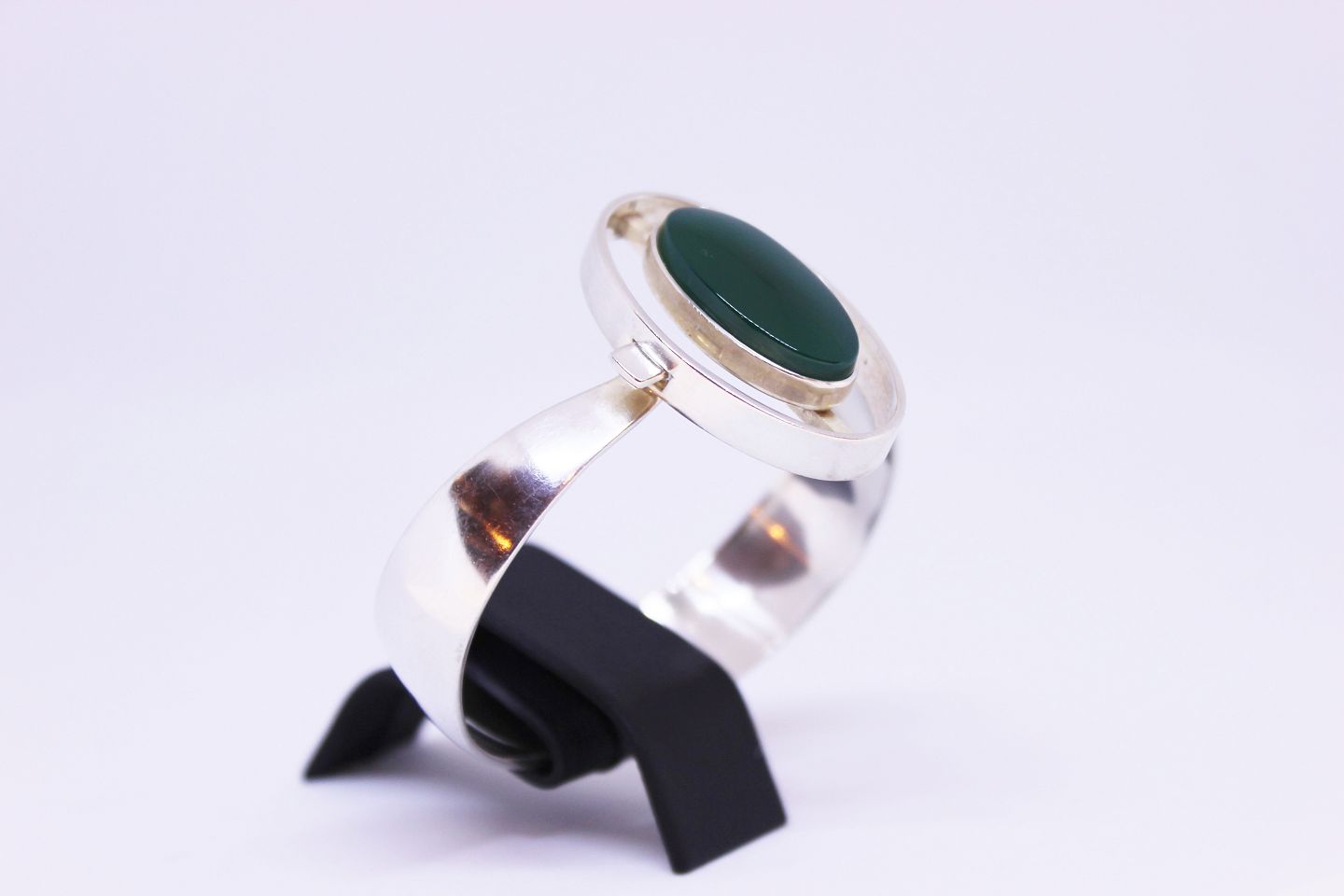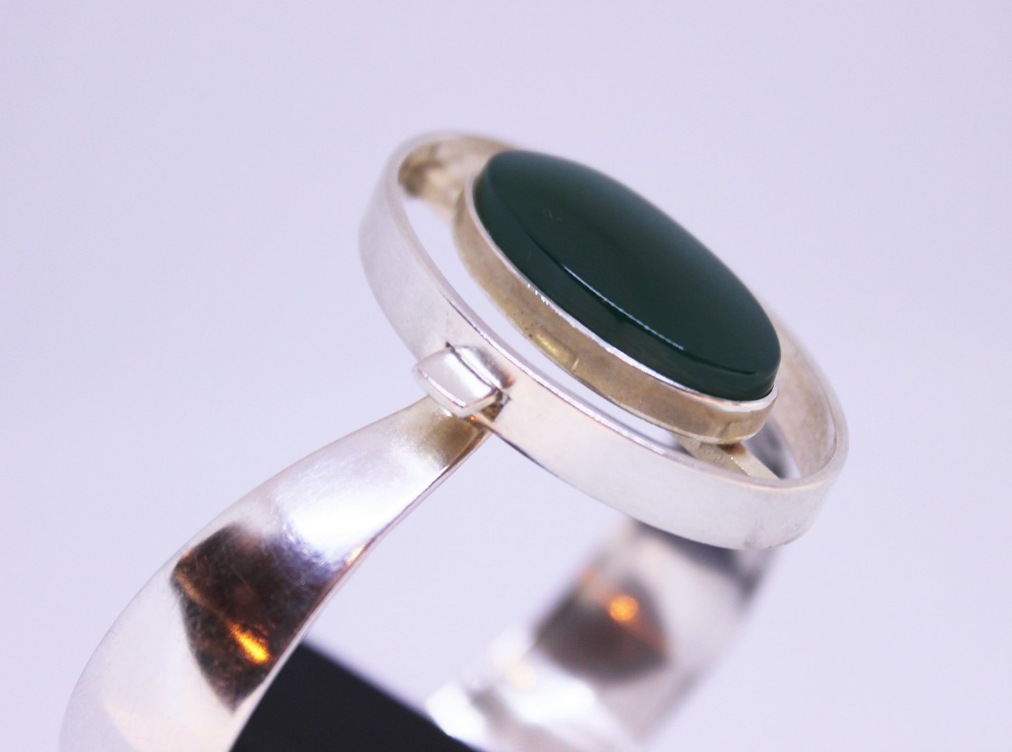 Armring af 925 sterling sølv dekoreret med stor jade sten af N.E. From. Smykket er i flot brugt stand.
