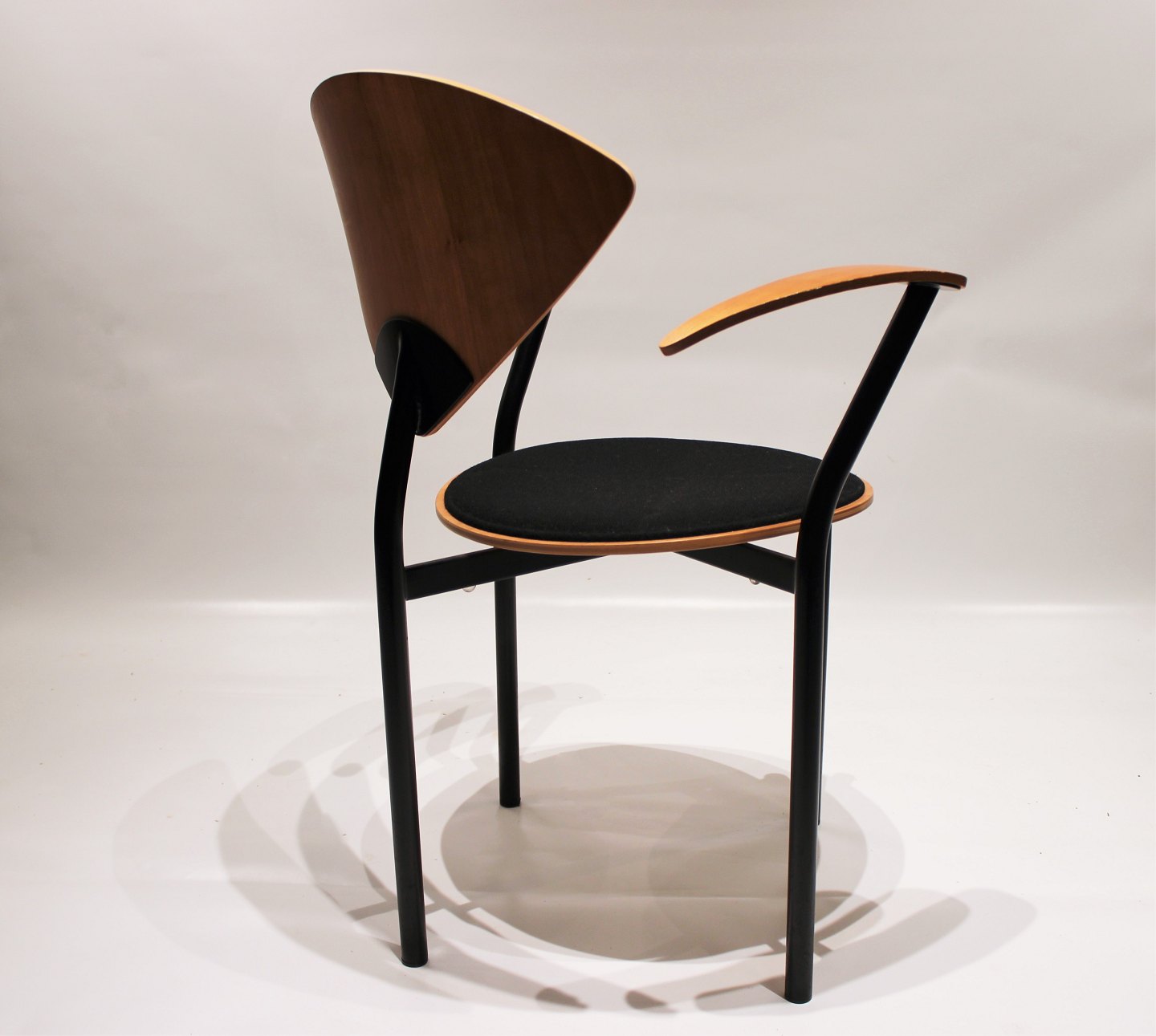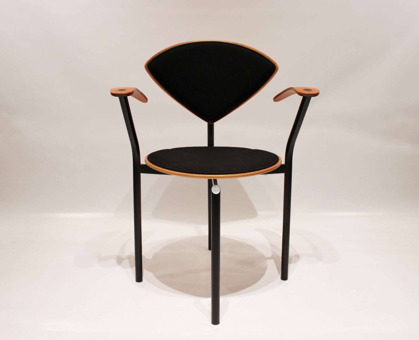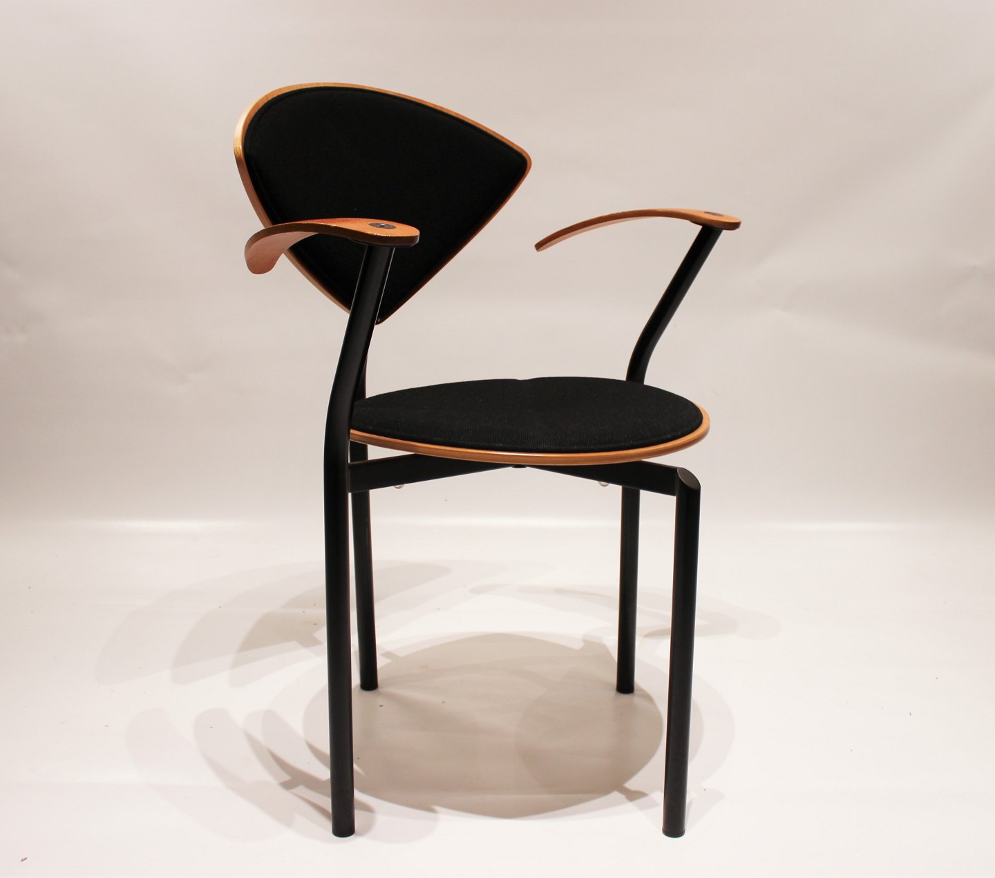 SoldConference chair with armrests of oak and black fabric, model Nimbus, by Bent Krogh. The chair is in great vintage condition and we have 7 in stock.
