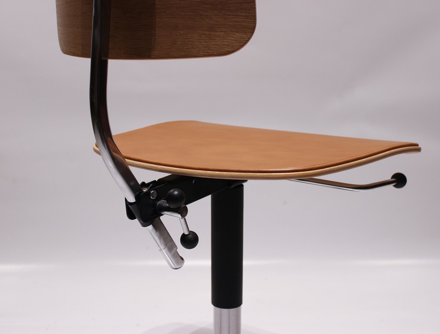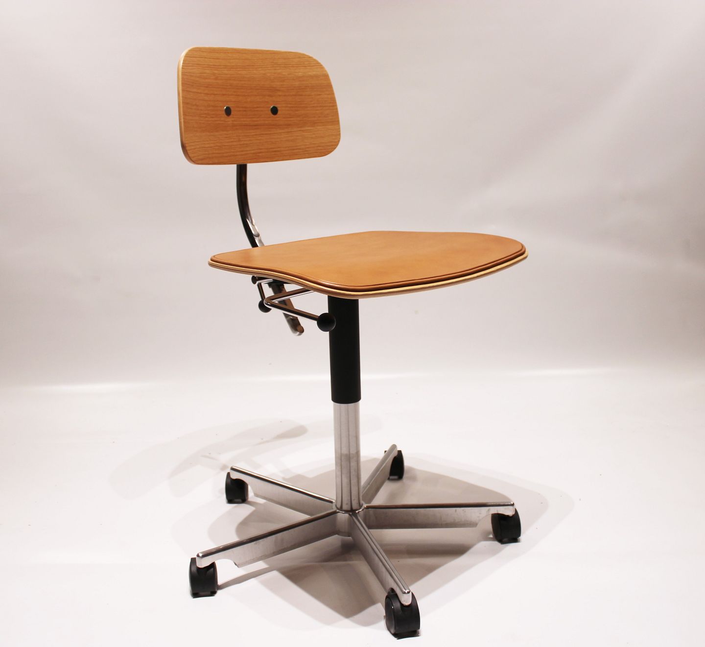 SoldKEVI 2533 office chair in oak and seat of cognac colored leather designed by Jørgen Rasmussen and manufactured by Engelbrechts in 2017. The chair is with a frame of aluminum and in great condition. We have more in stock.