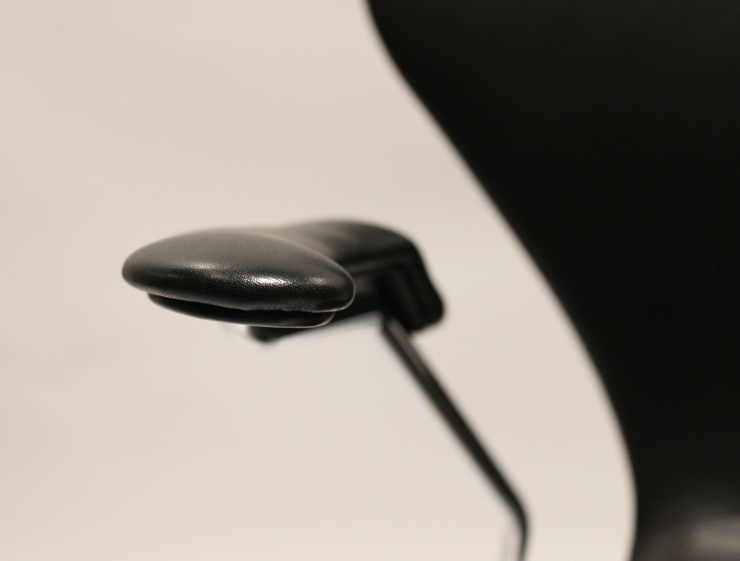 Arne Jacobsen's Seven chair is a masterpiece in itself, characterized by its simple and streamlined design, which nevertheless manages to be extremely comfortable and ergonomically correct. The chair's armrests add extra comfort and functionality, making it suitable for longer periods of use, both at the dining table and as an office chair.