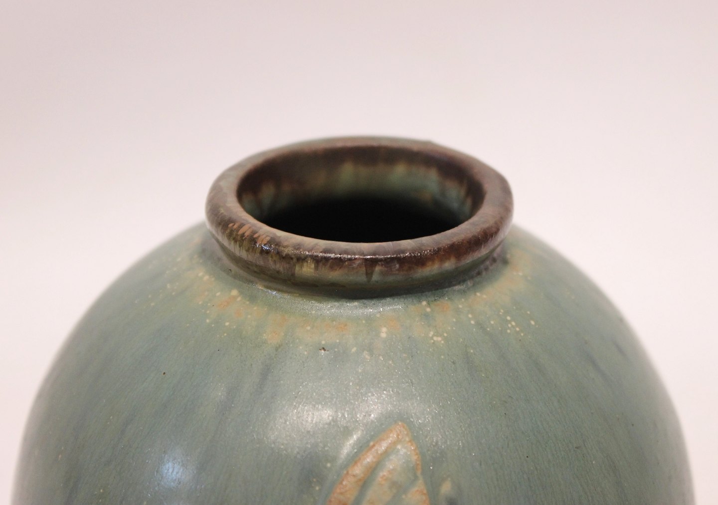 SoldCeramic vase in turquoise colors decorated with fish motif, no. 18, by Arne Bang. The vase is in great vintage condition.