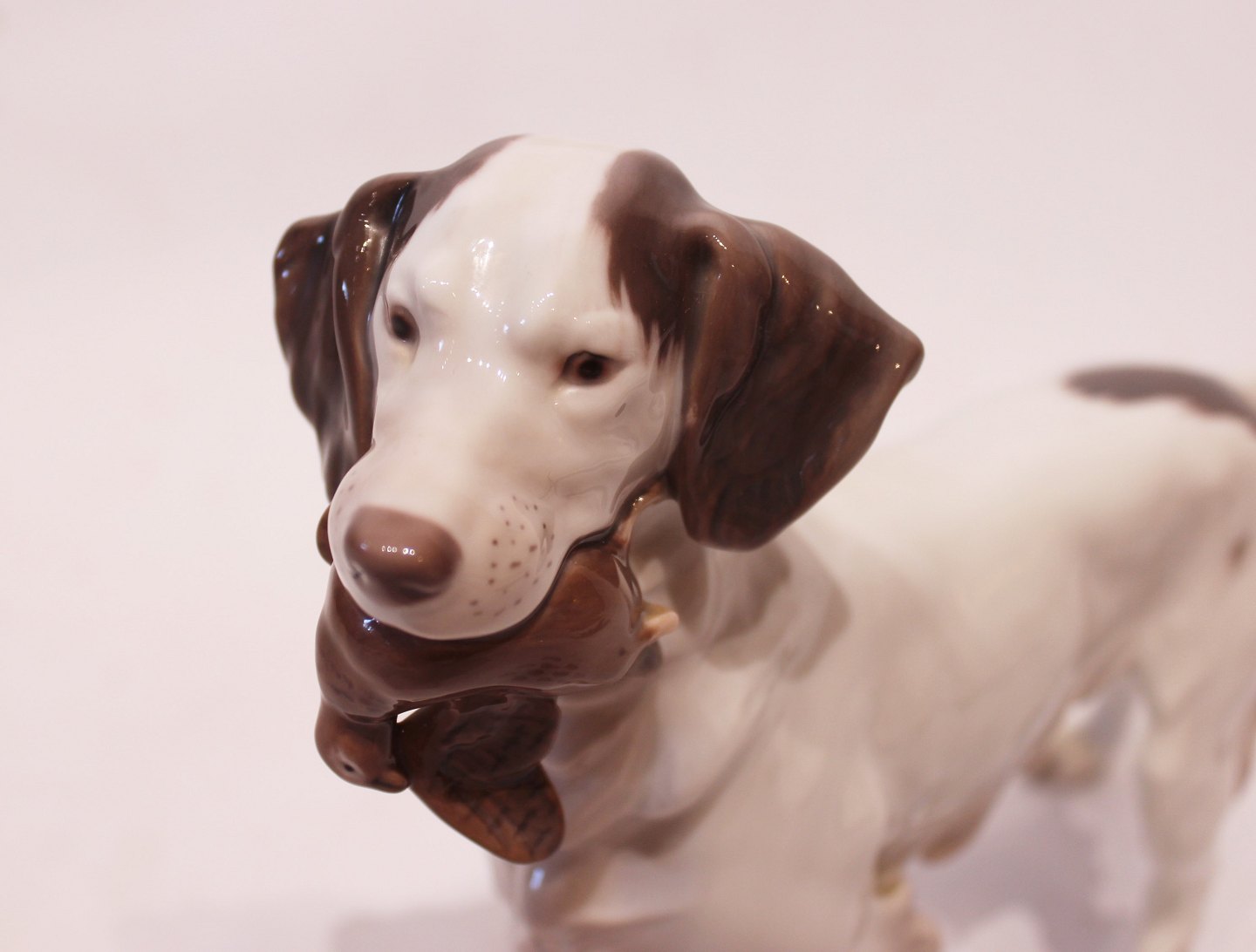 Porcelain figure - Hunting dog with prey - No. 2015 - Lauritz Jensen - Bing and Grondahl.