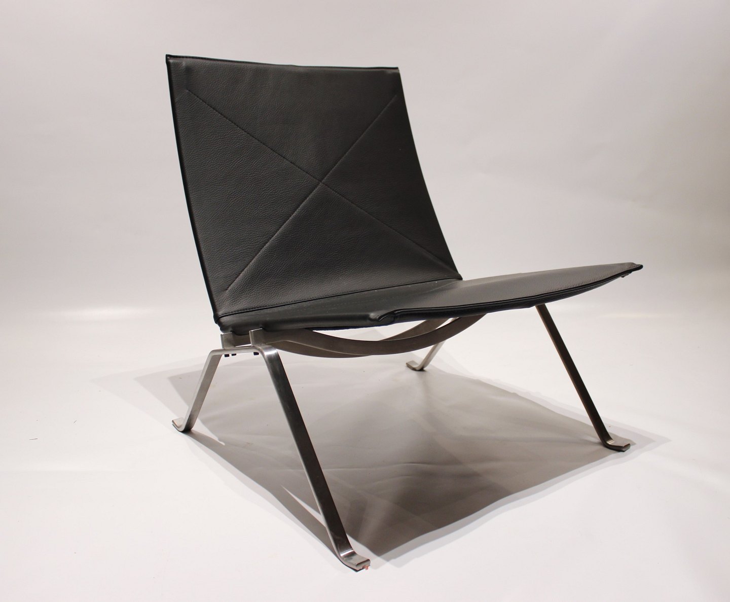 Poul Kjærholm's PK22 chair is famous for its minimalist design and use of carefully selected materials. With a chrome frame and original upholstery in classic black leather, these chairs exude timeless sophistication and simplicity. The leather's natural patina and durability make it not only a beautiful choice, but also a practical choice for long-term use.