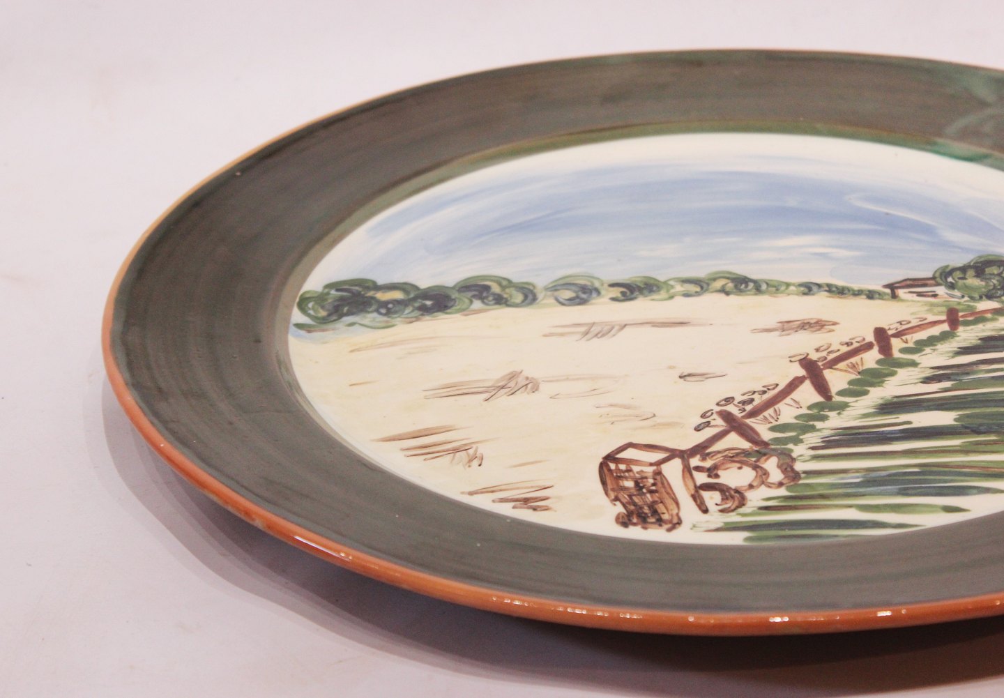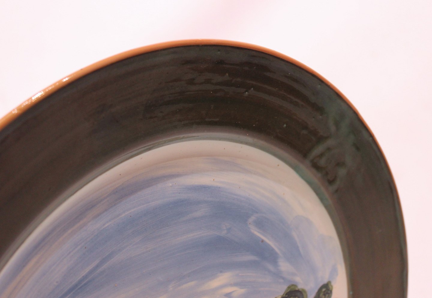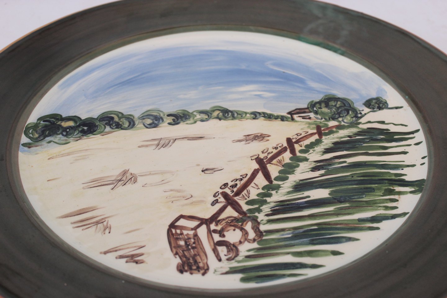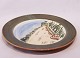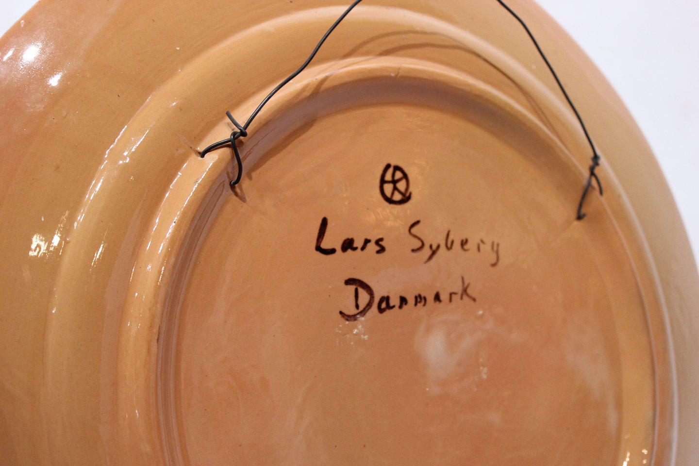 Stort rundt keramik fad i lyse farver af Lars Syberg. Fadet er i flot brugt stand.