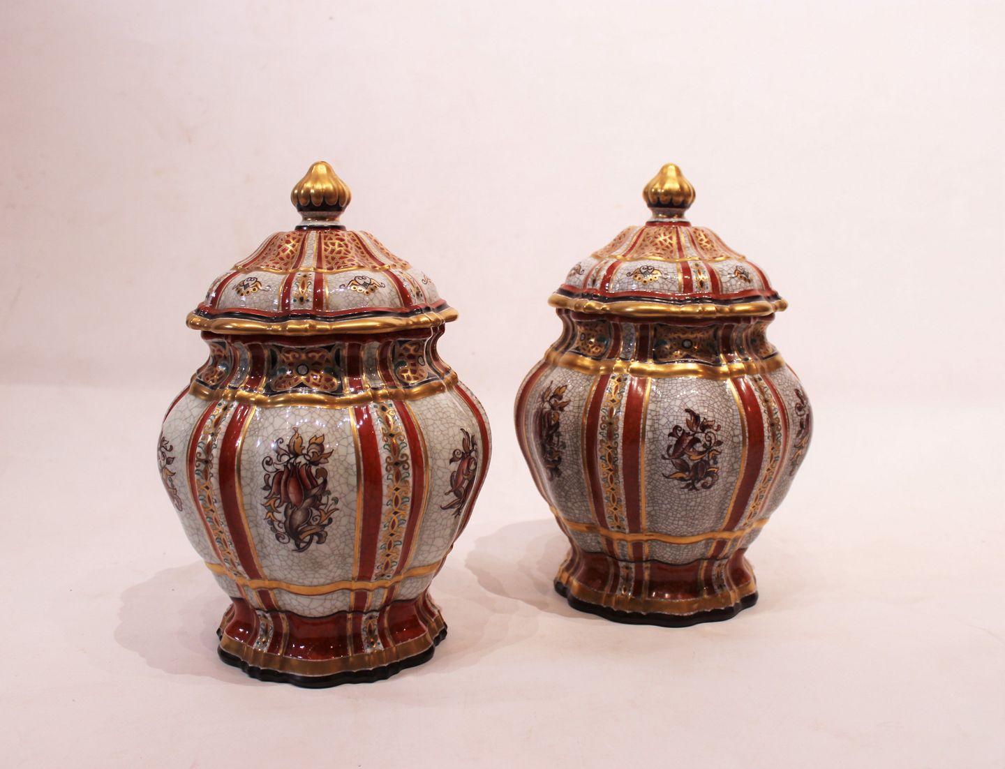 A pair of lidded jars of stoneware by Dahl Jensen. The jars are in great vintage condition.