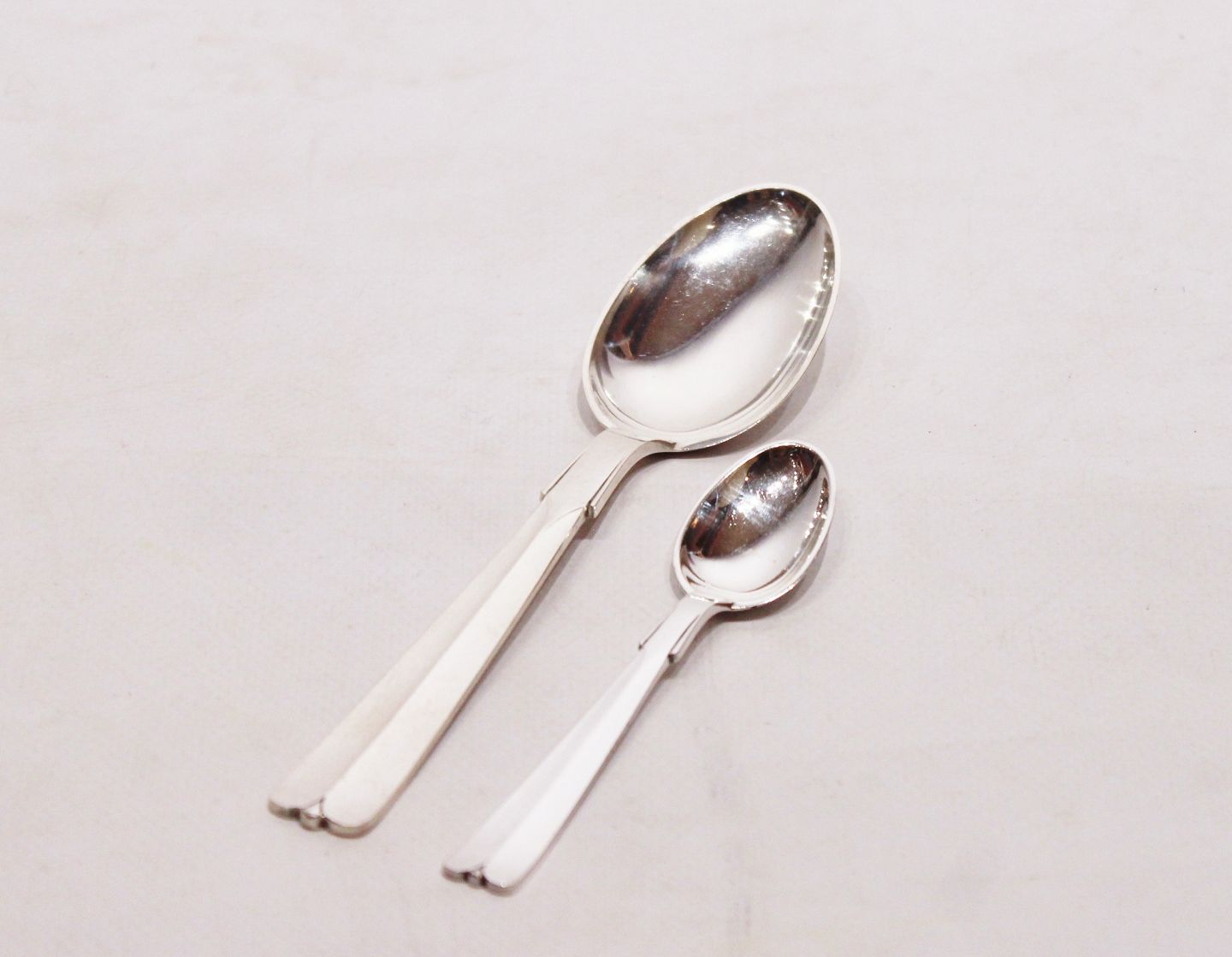Dessert spoon and teaspoon in Heritage silver no. 7 by Hans Hansen.
