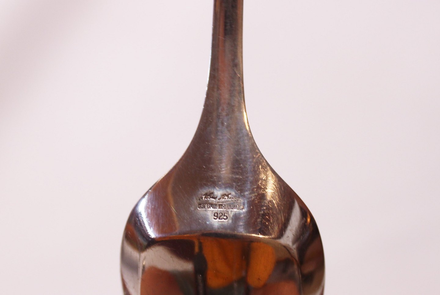 Se prisen i varebeskrivelsenDessertske (800 kr.) og teske (400 kr.) i Kristine af Hans Hansen. Spørg for antal på lager.