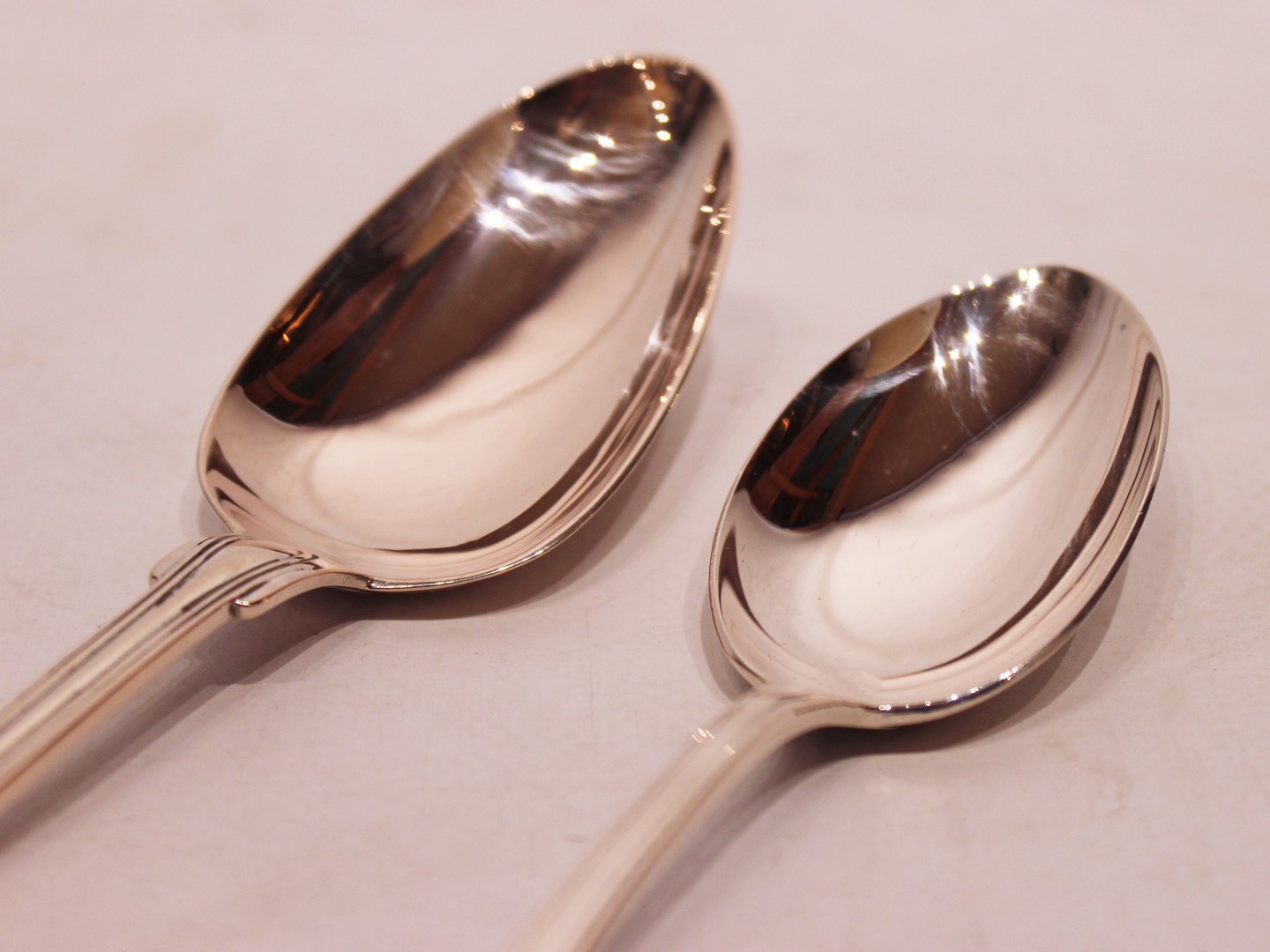 Dinner spoon in different patterns of hallmarked silver. Ask for number in stock.