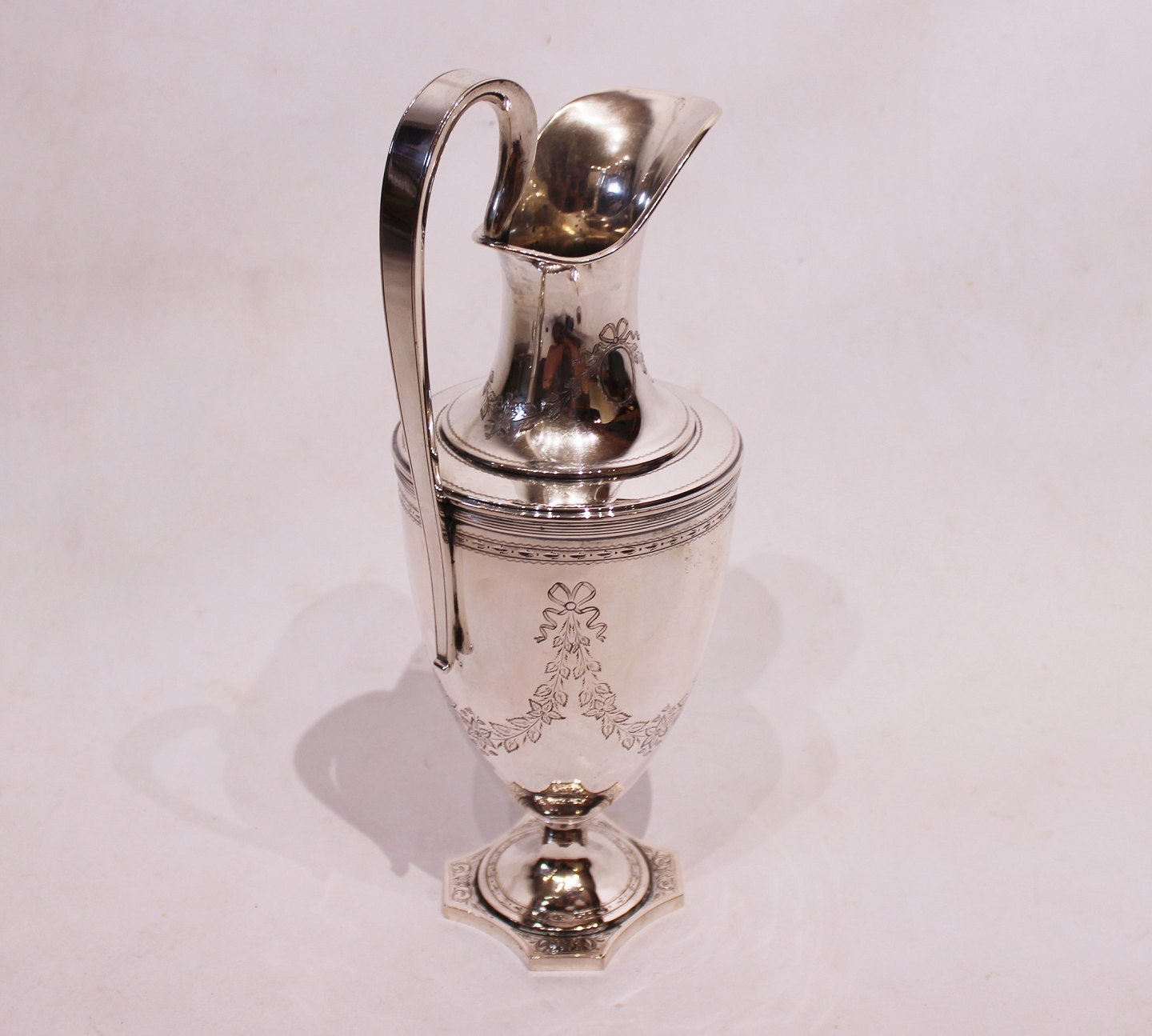 Water jug of hallmarked silver, decorated with pattern. The jug is in great vintage condition.