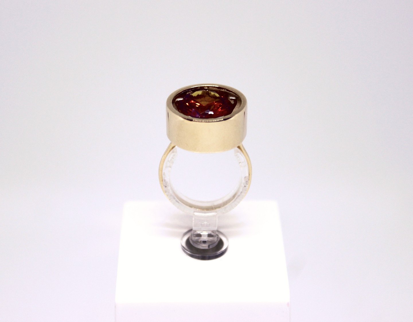 Ring af 14 kt. guld dekoreret med rav sten.