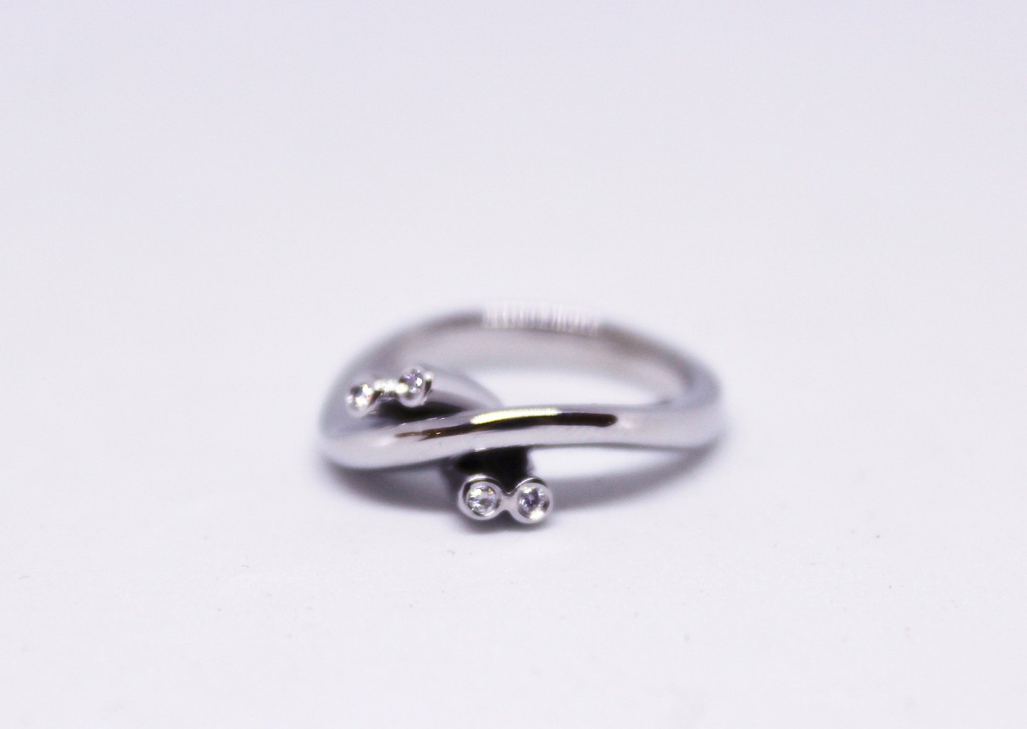 Ring of 14 ct. white gold decorated with four diamonds and stamped P.Bo.