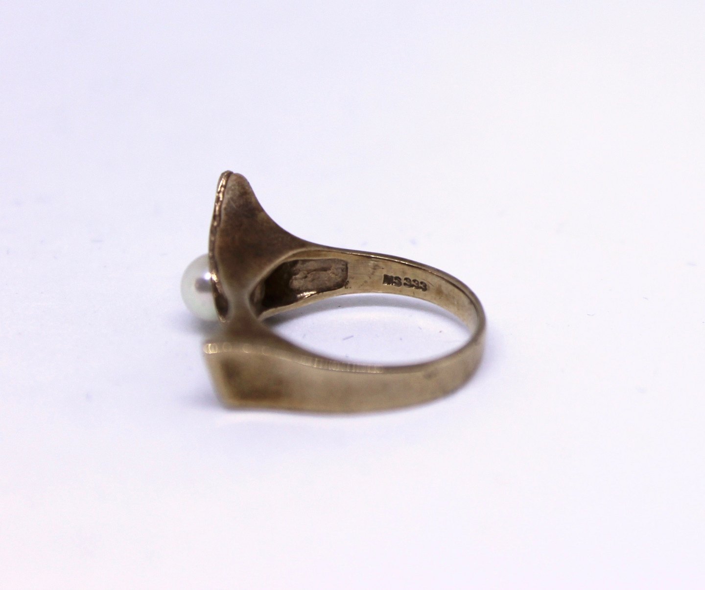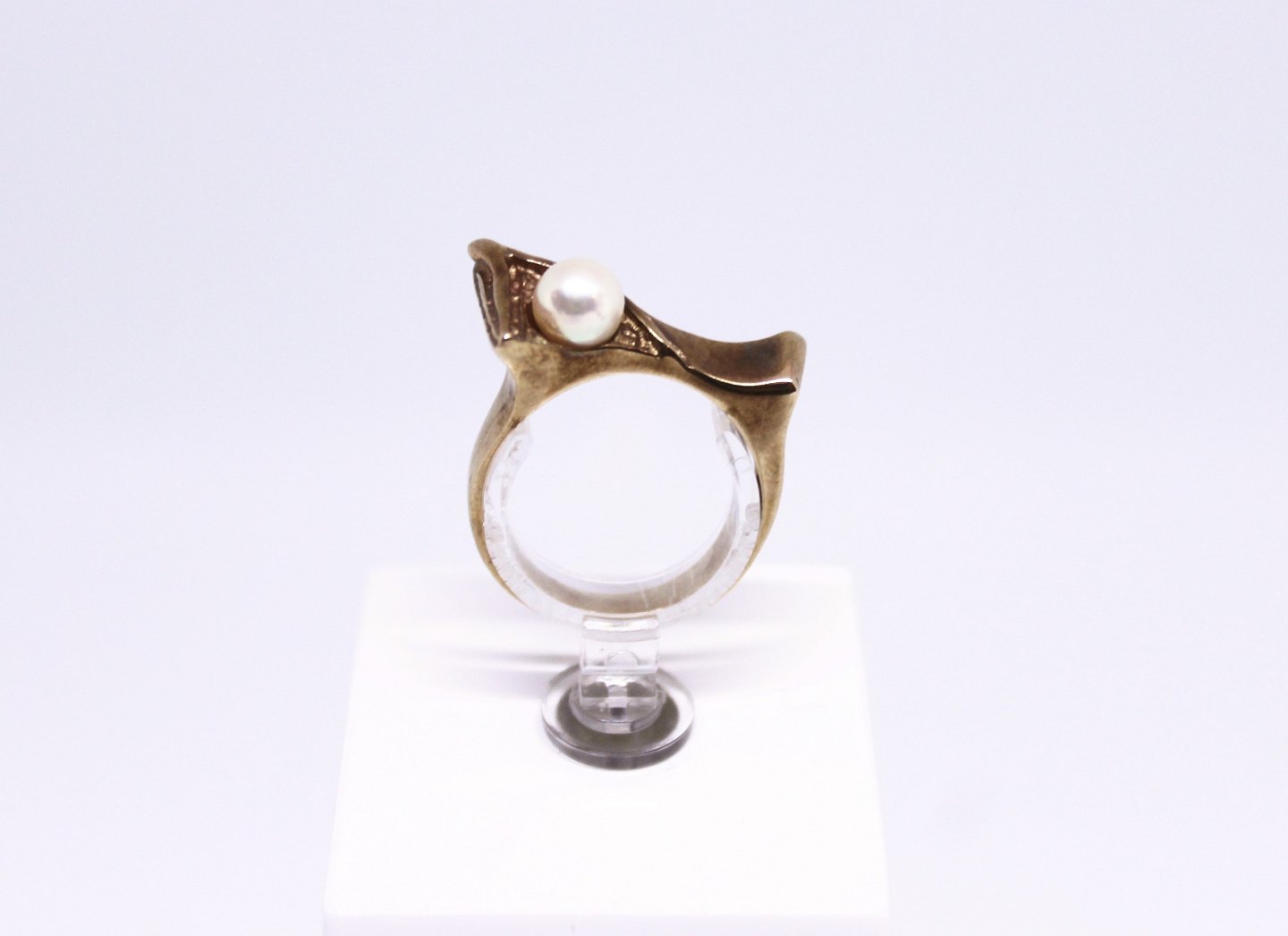 Ring of 8 carat gold with cultured pearl and stamped HS.