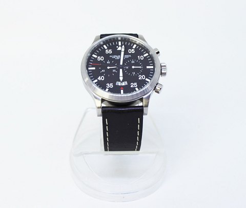 Roberto Cavalli, quartz, herre armbåndsur med kronograf, datoanvising, urkasse af rustfrit stål og sort læderrem. Uret er i flot brugt stand.