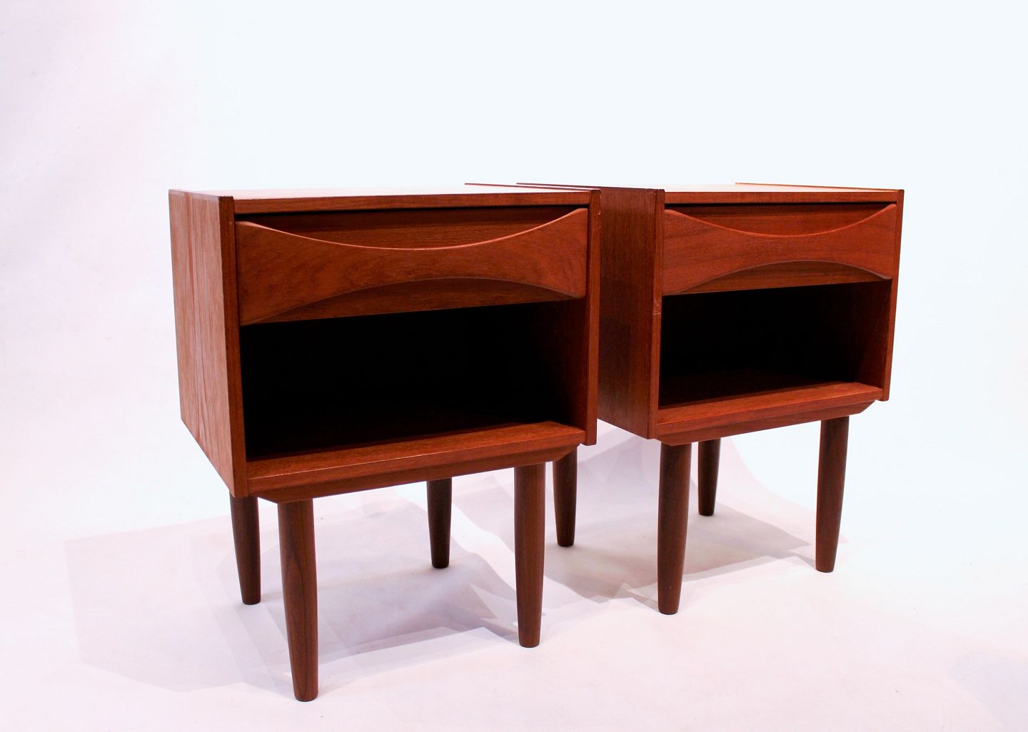 A pair of bedsidetables in teak of danish design from the 1960s. The tables are in great vintage condition.