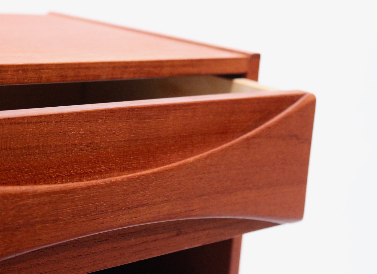 A pair of bedsidetables in teak of danish design from the 1960s.