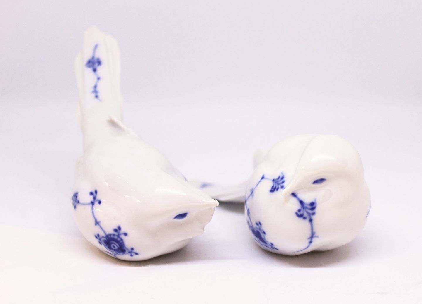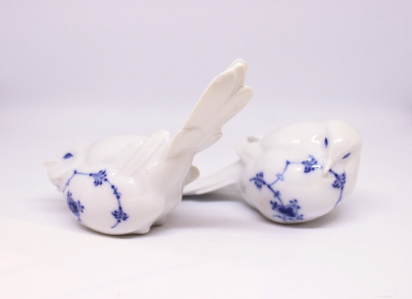 SoldA pair of Royal Copenhagen blue fluted birds, numbered; xx3 and 3xa. The pair is in great vintage condition.