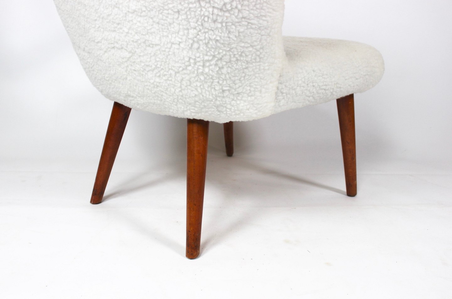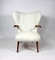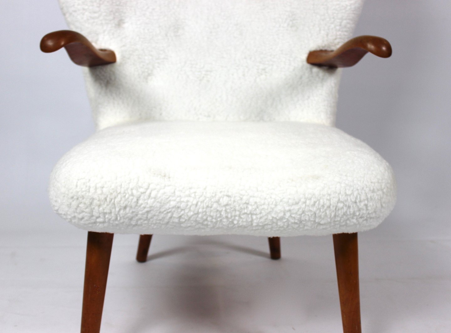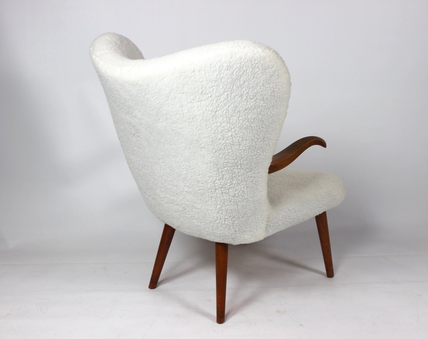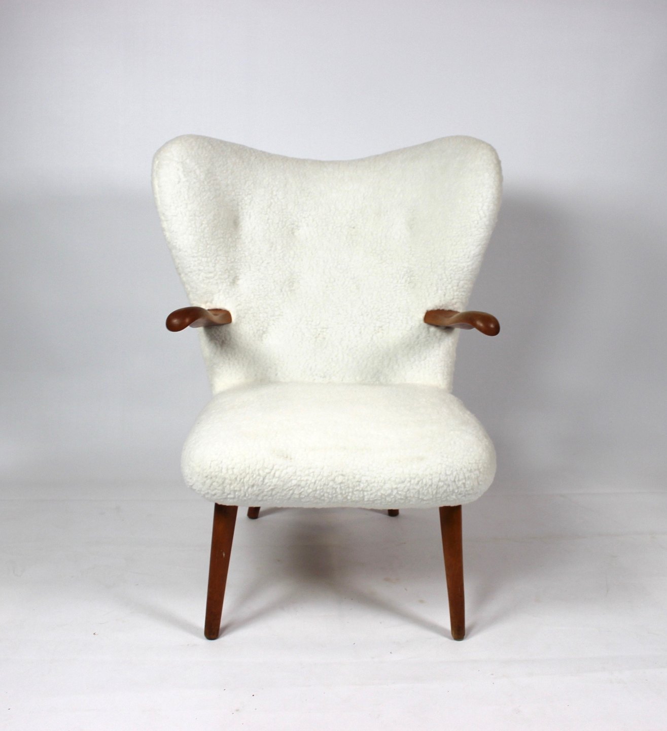 SoldArmchair upholstered with sheep skin and with arms of dark wood of danish design from the 1930s. The chair is in great vintage condition.