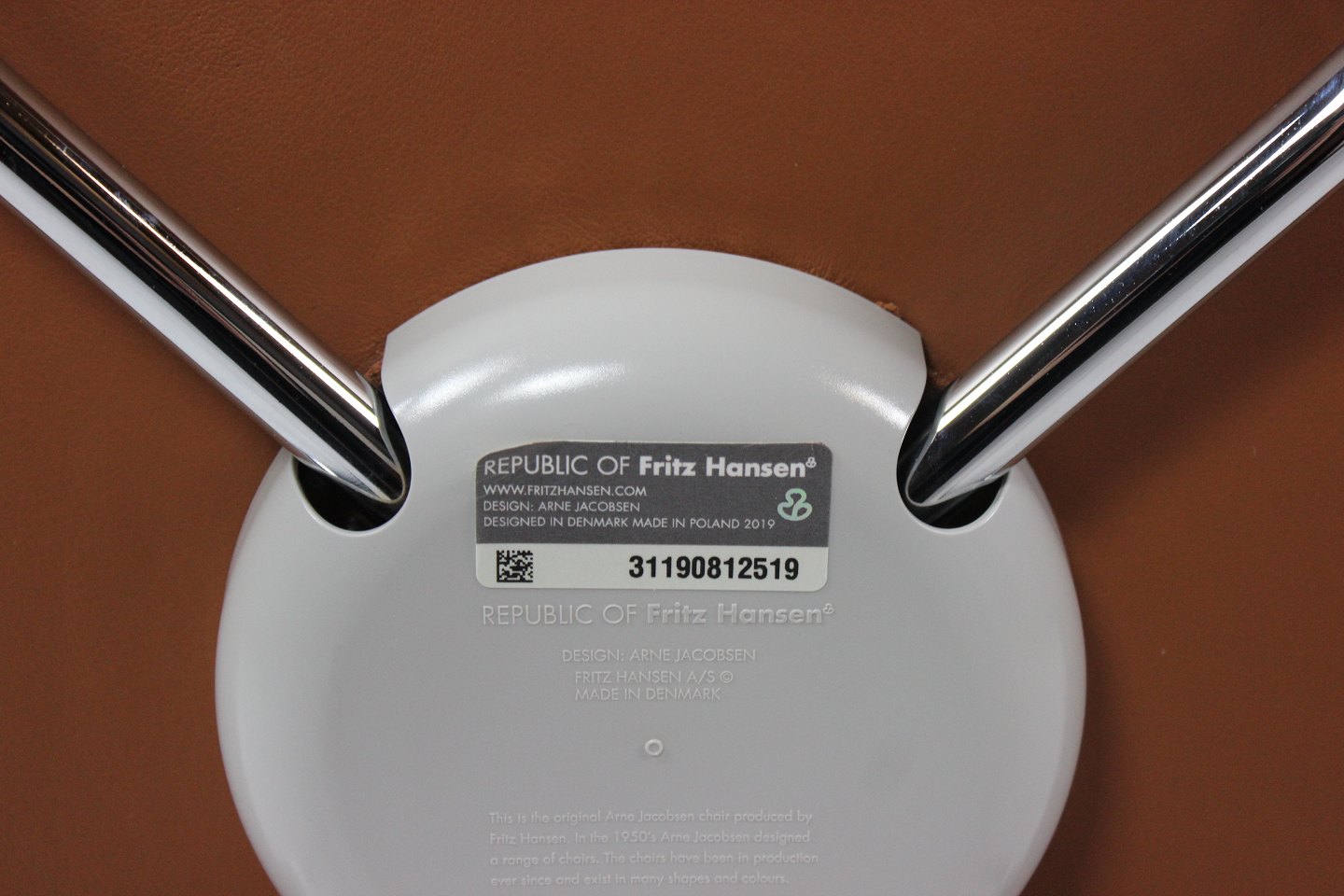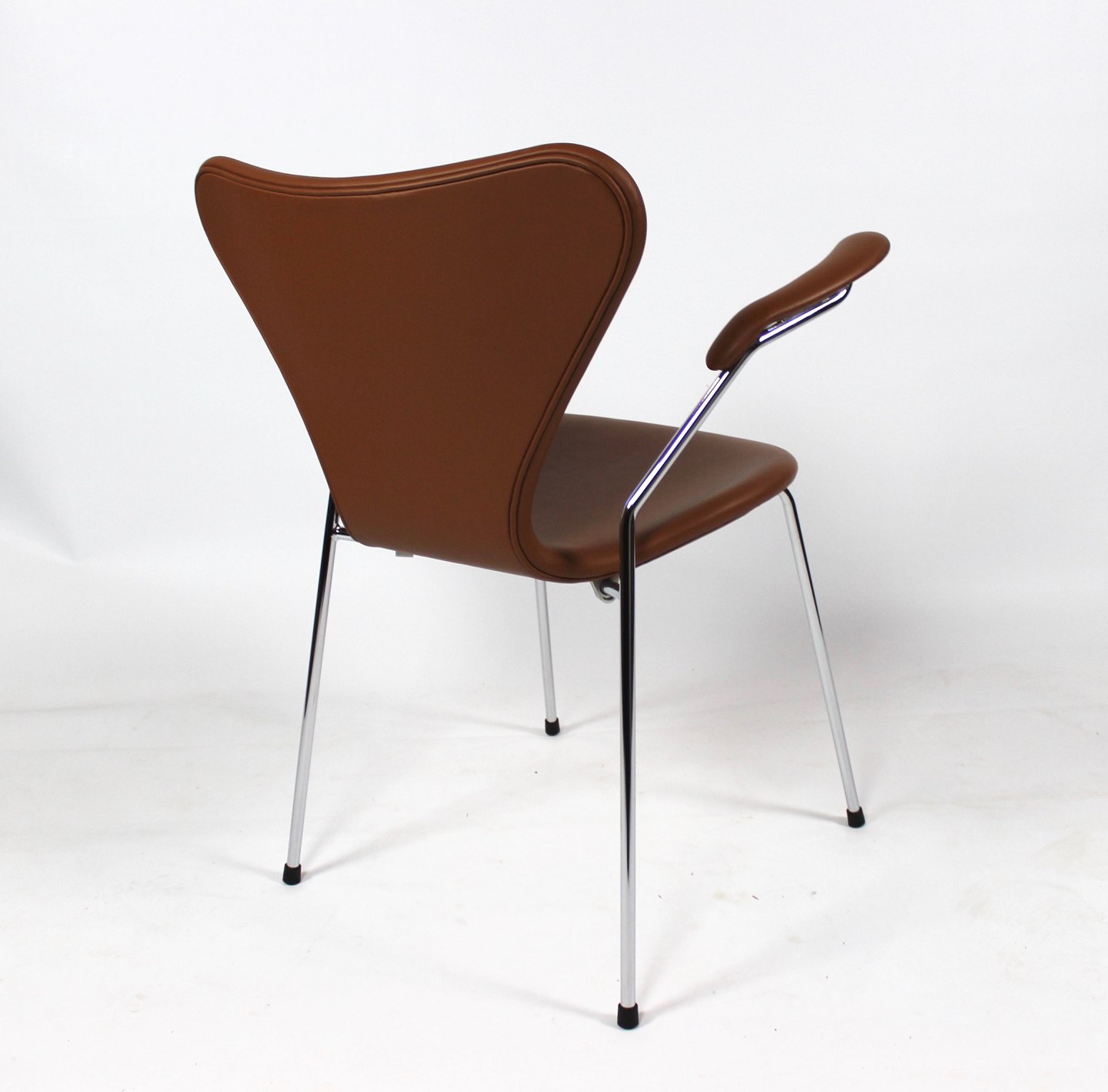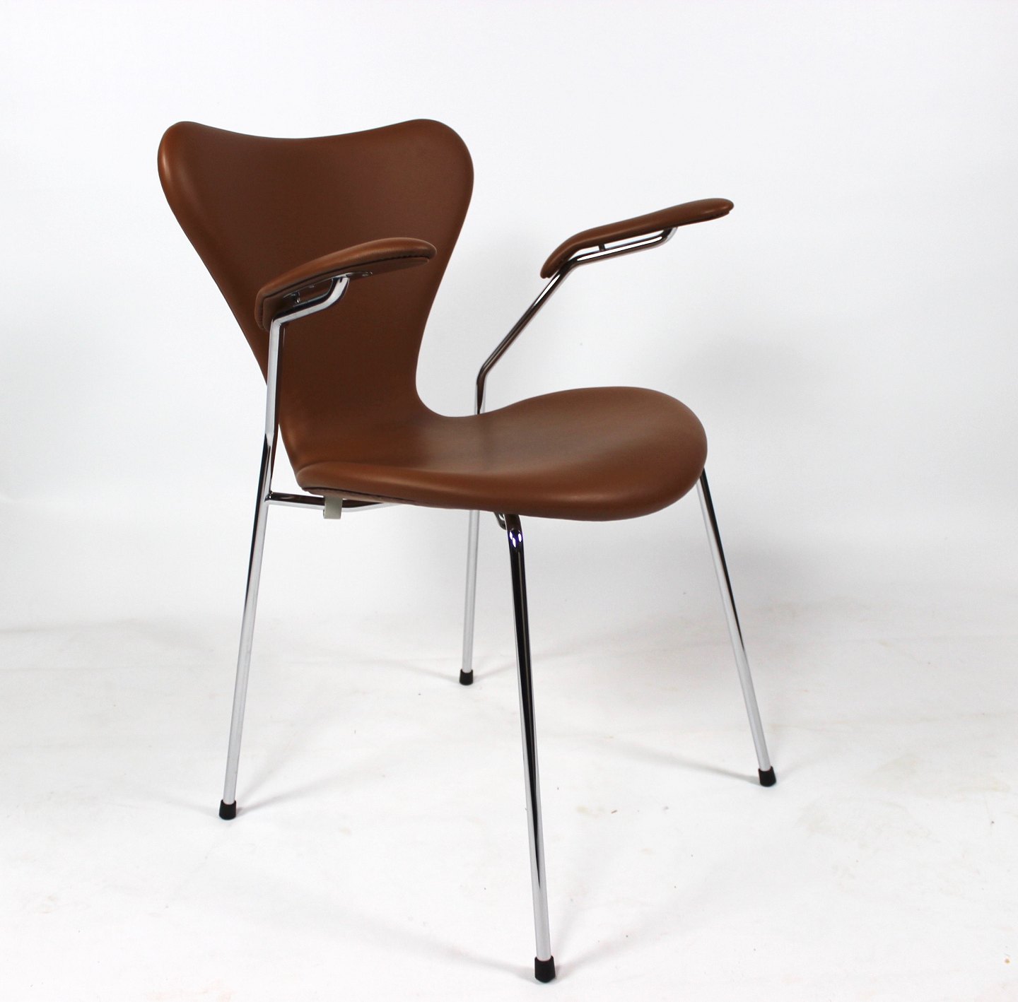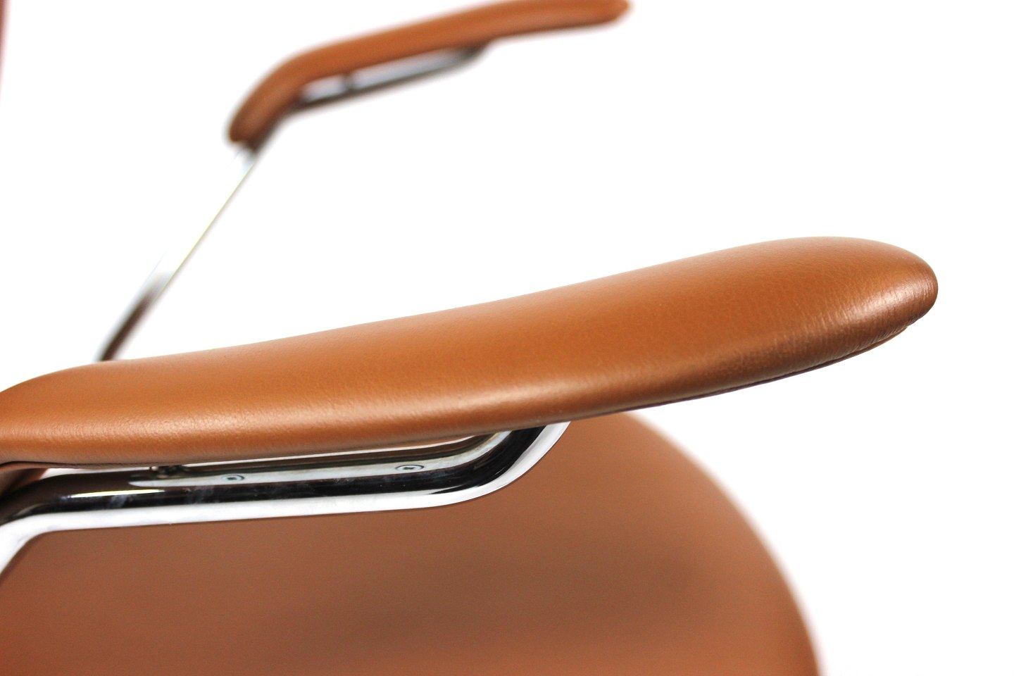 Et sæt af syver stole - Model 3207 - Armlæn - cognac farvet læder - Arne Jacobsen - Fritz Hansen