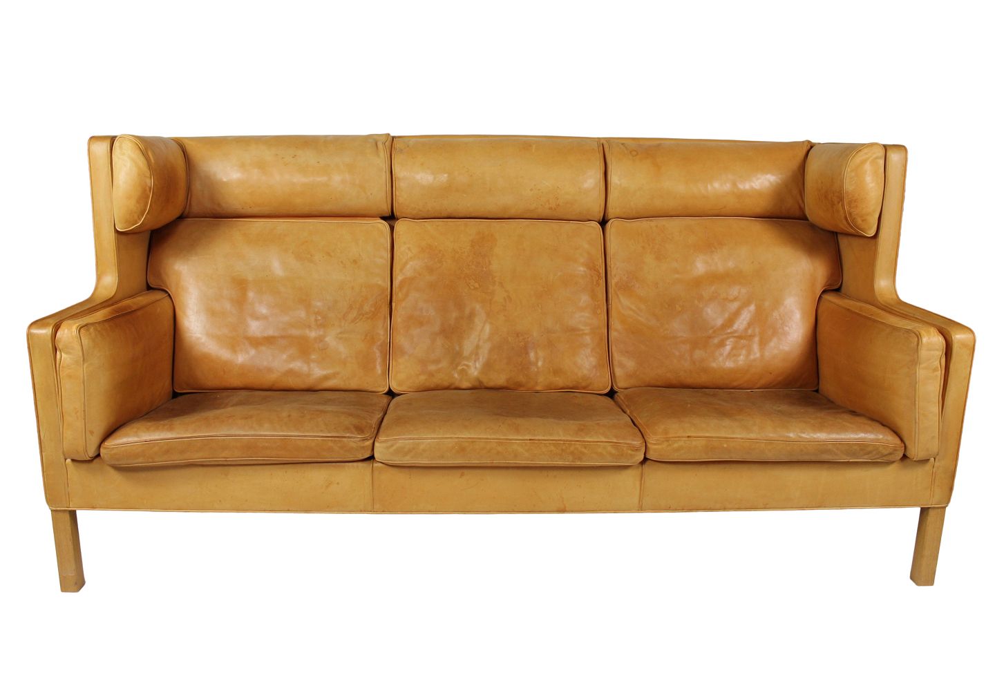 Three seater sofa, model Kupe, by Børge Mogensen and upholstered with light cognac colored leather.
