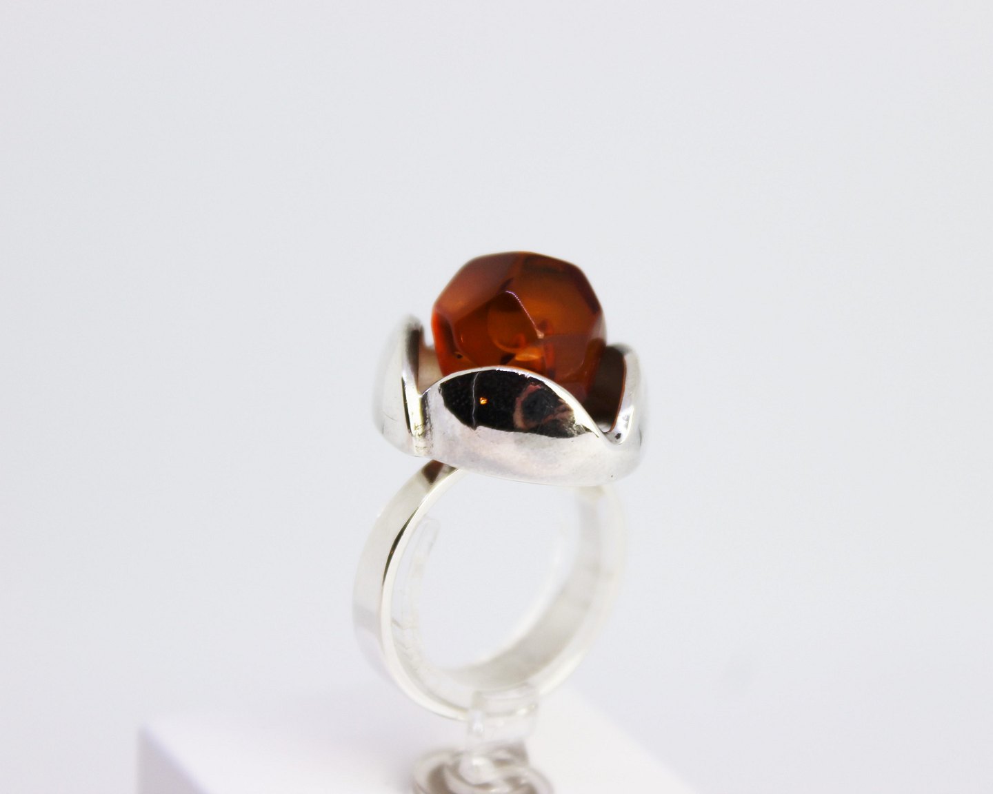 Ring of 925 sterling silver decorated with a piece of amber and stamped EF. We have two pieces in stock.
