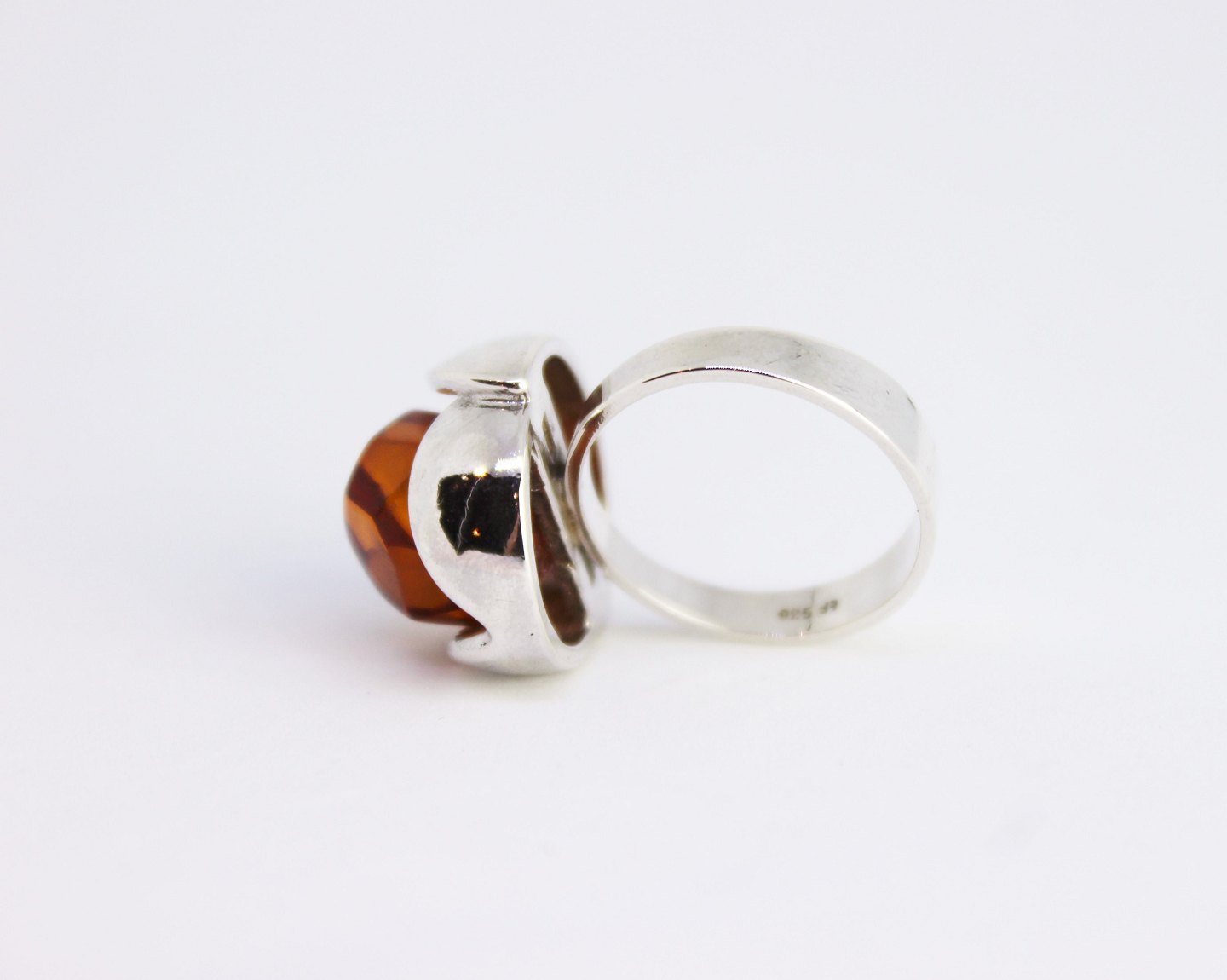 Ring of 925 sterling silver decorated with a piece of amber and stamped EF.
