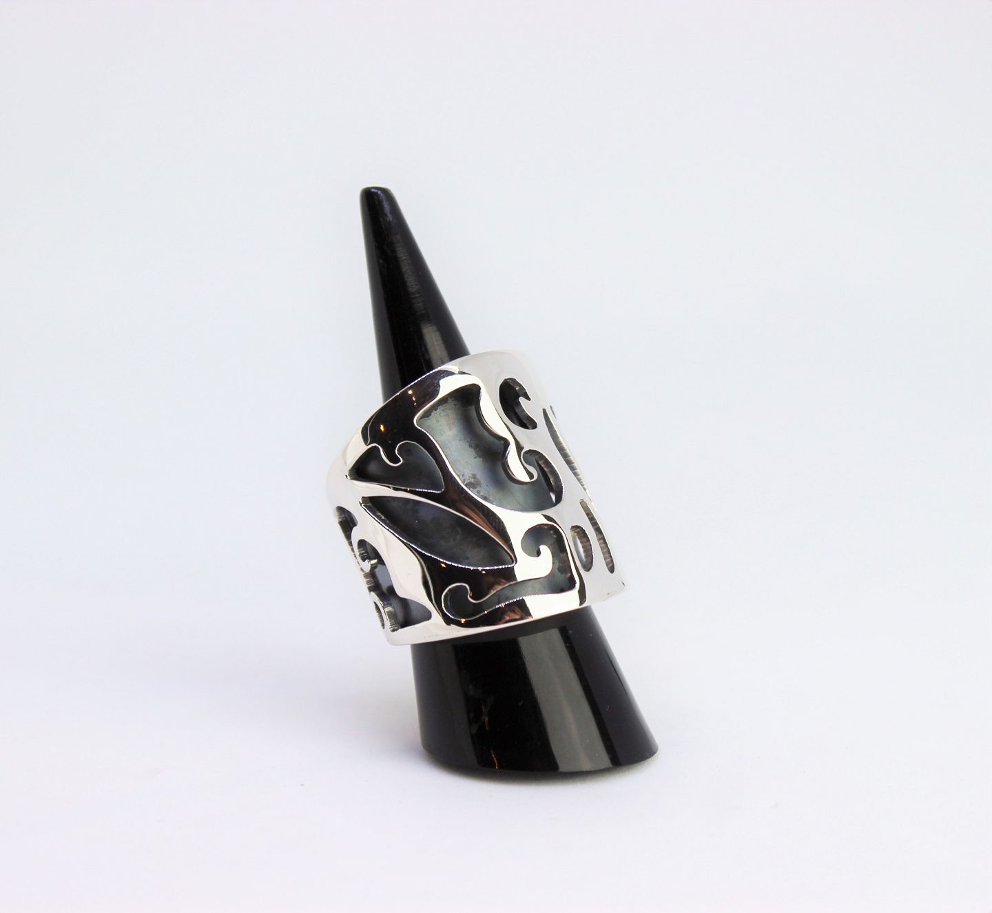 SoldHeavy and wide ring of 925 sterling silver decorated with pattern.
