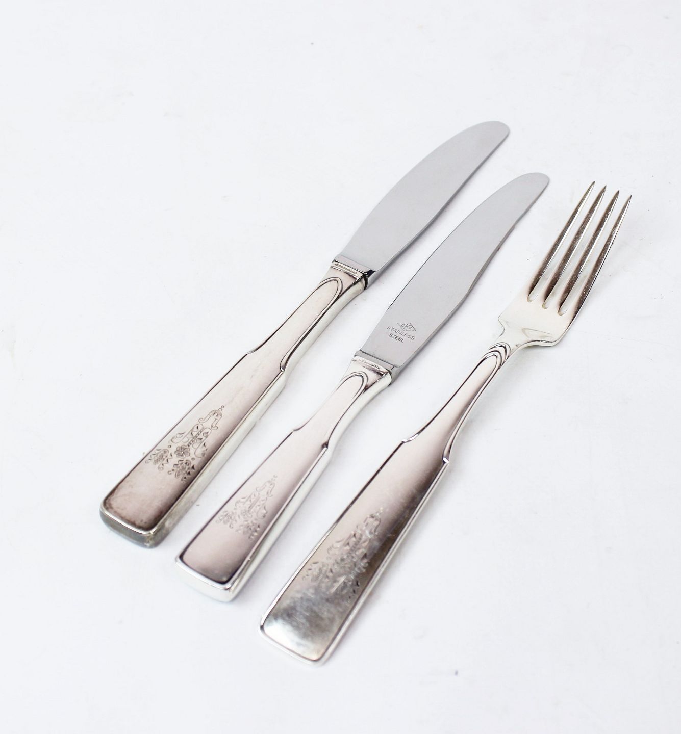 Middagskniv, Frokostkniv & Middagsgaffel i arvesølv nr. 2 - Hans Hansen.