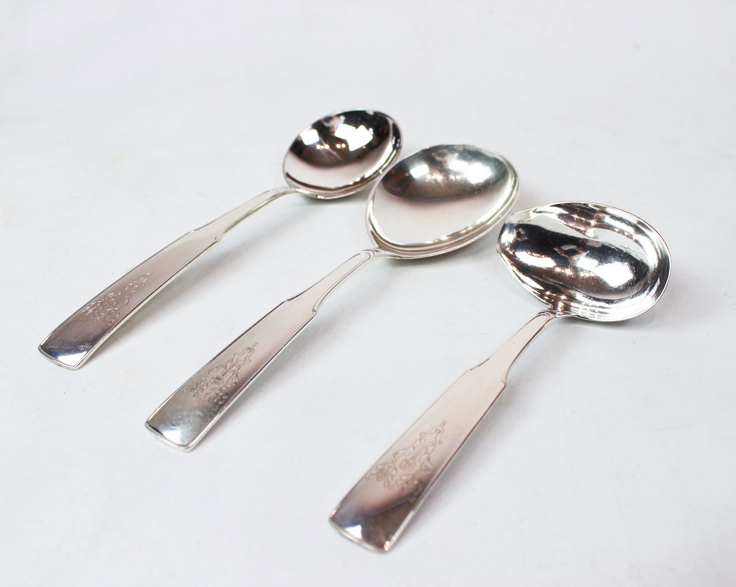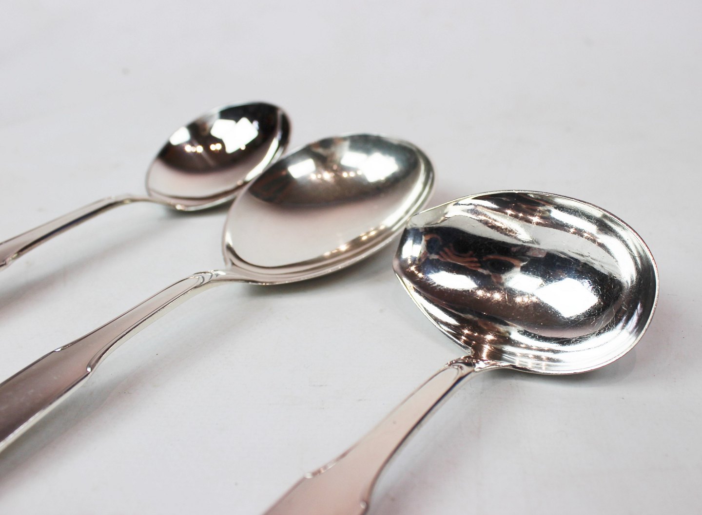 Se prisen i varebeskrivelsenMindre serveringsskeer og sovseske i arvesølv nr. 2 af Hans Hansen.