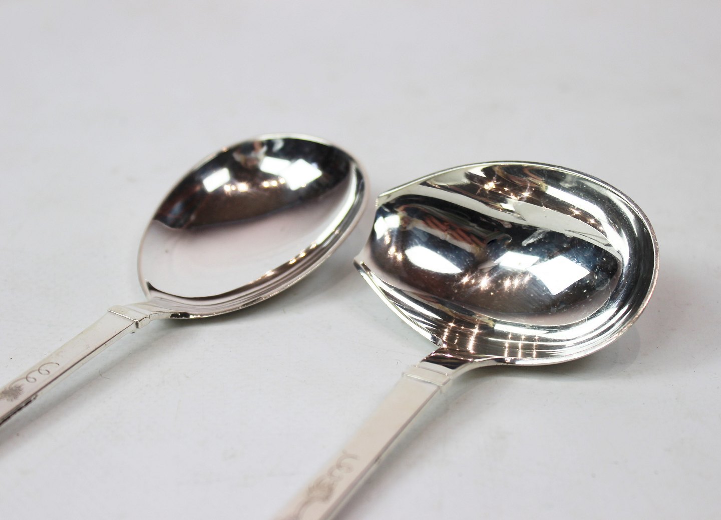 Se prisen i varebeskrivelsenServeringsske (1.300 DKK) og sovseske (1.350 DKK) i arvesølv nr. 12 af Hans Hansen.