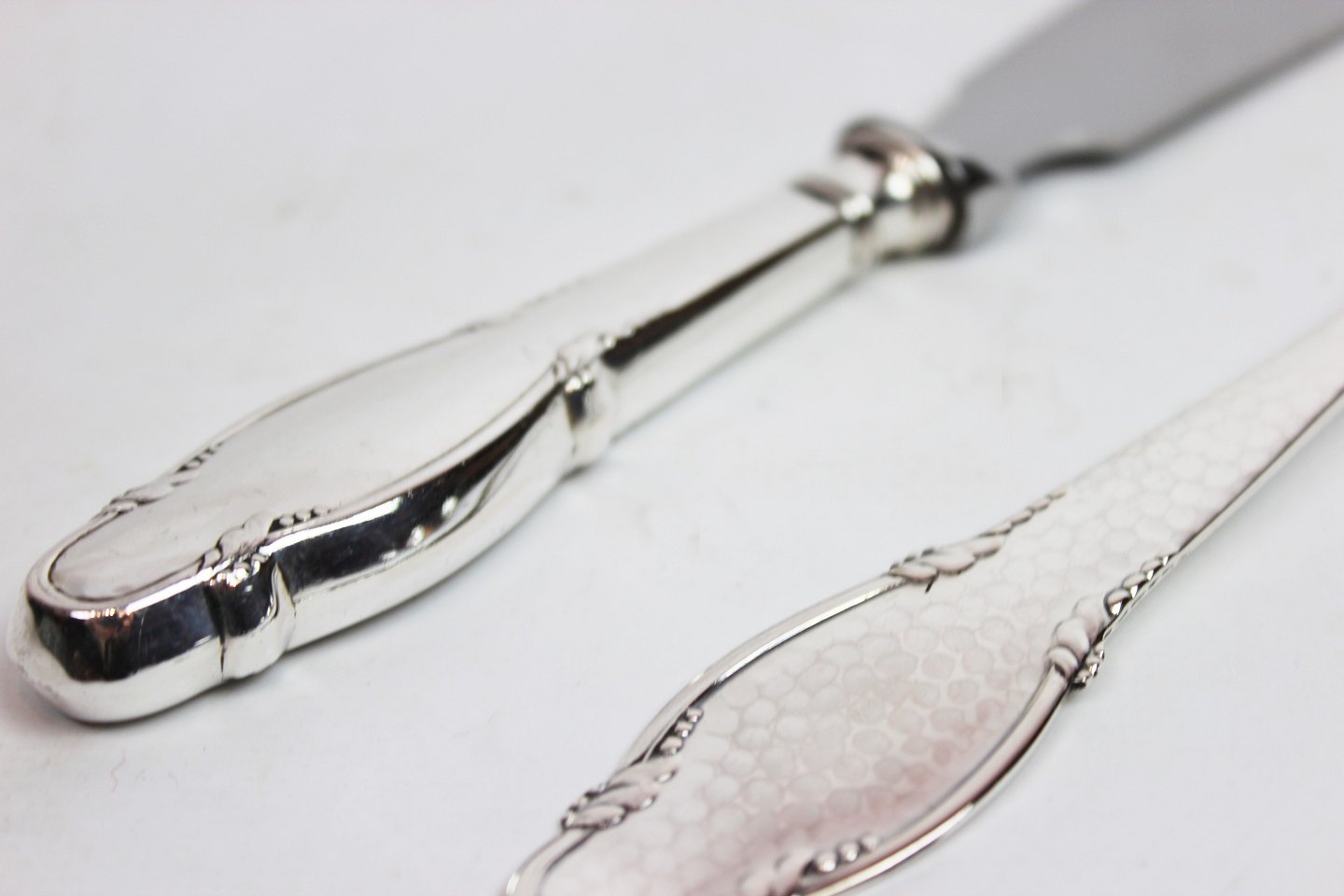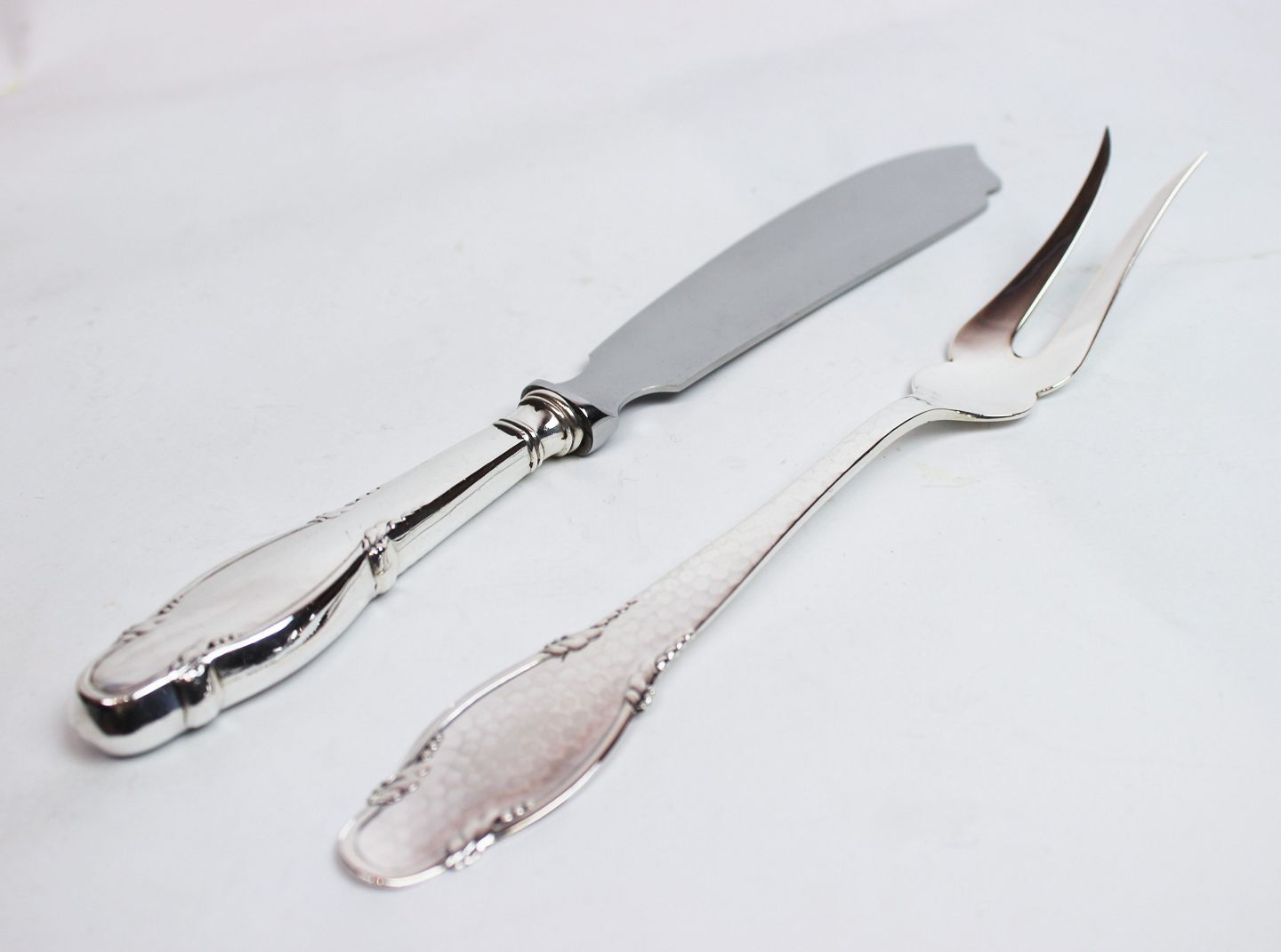 Kagekniv og stegegaffel i Frijsenborg , tretårnet sølv.