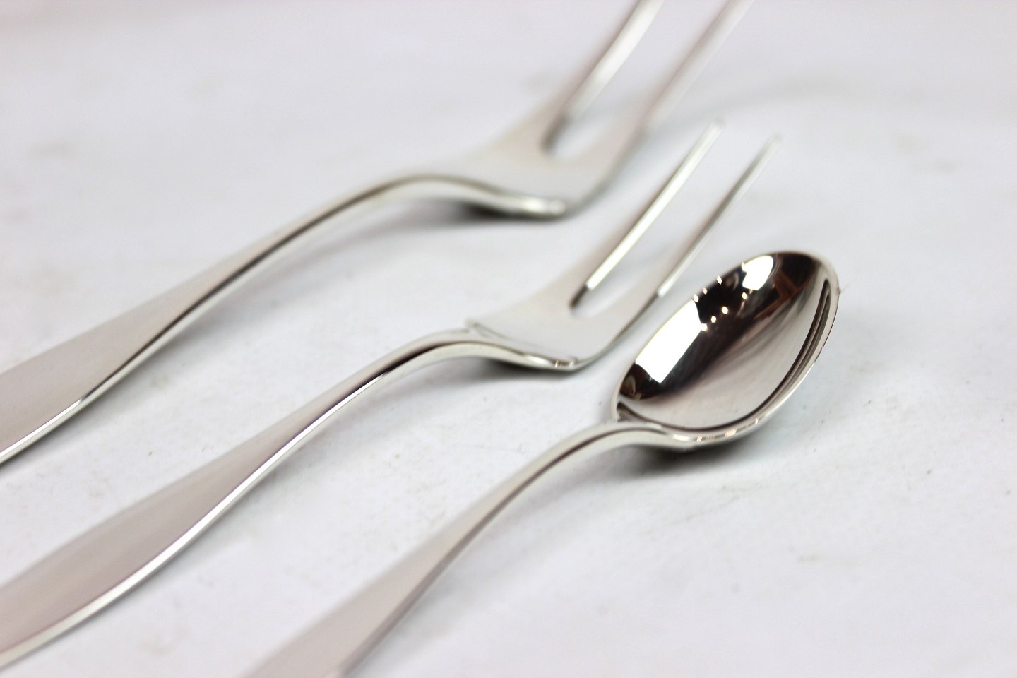 Se prisen i varebeskrivelsenStegegaffel, pålægsgaffel og teske i Charlotte af Hans Hansen. Spørg for antal på lager. Teske i Charlotte(300 DKK) - pålægsgaffel(525 DKK) - Stegegaffel(950 DKK)