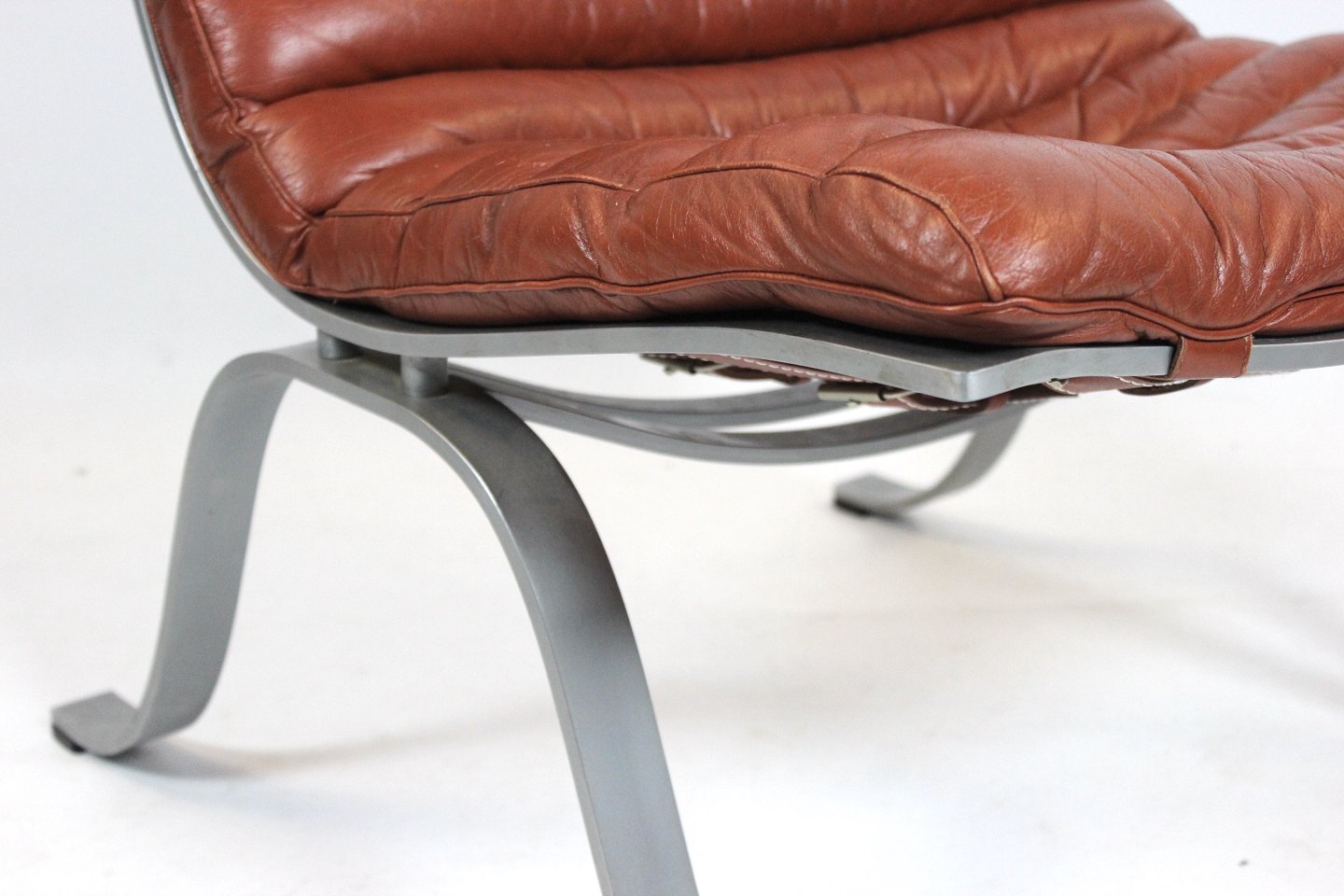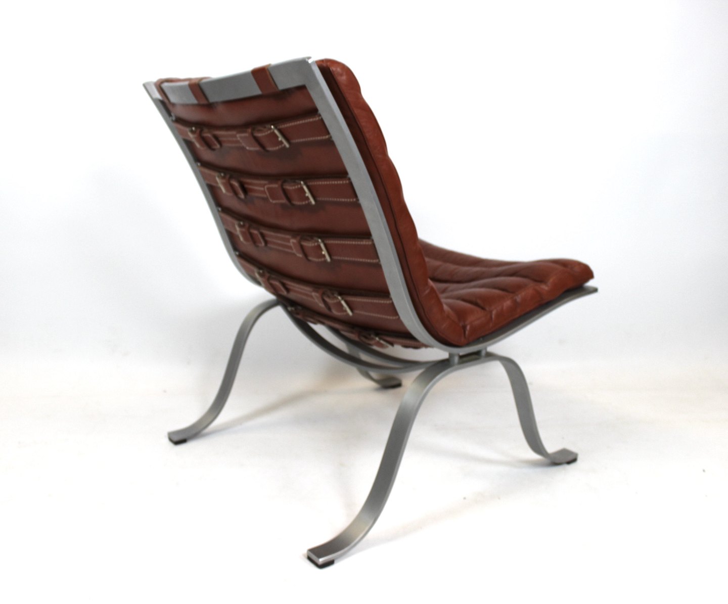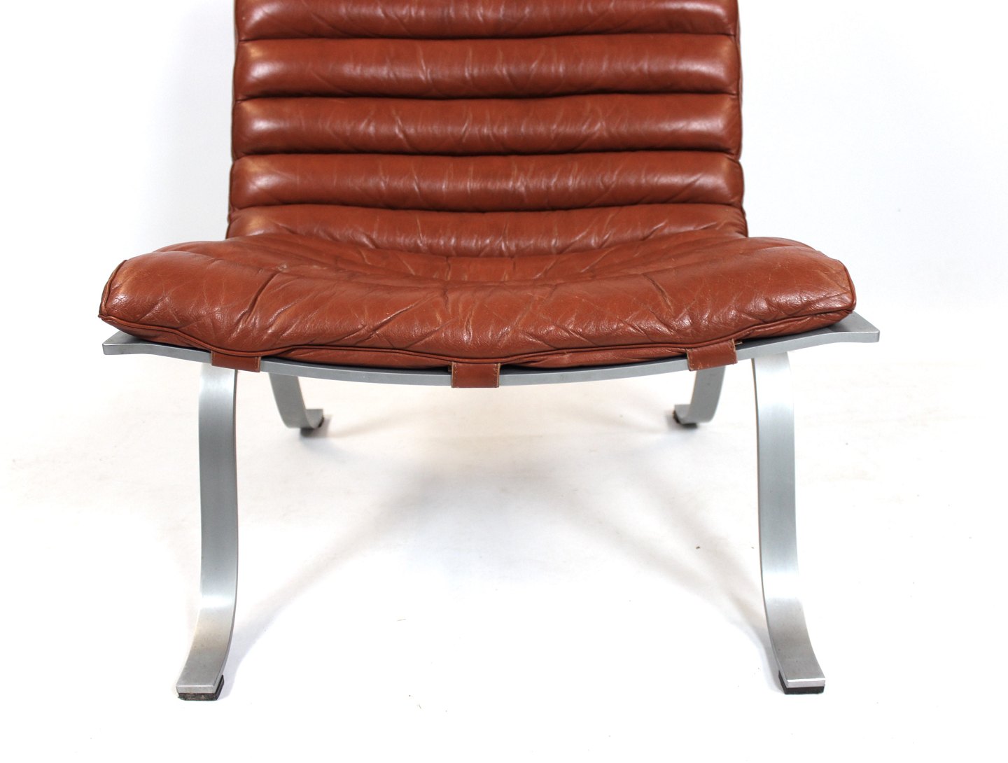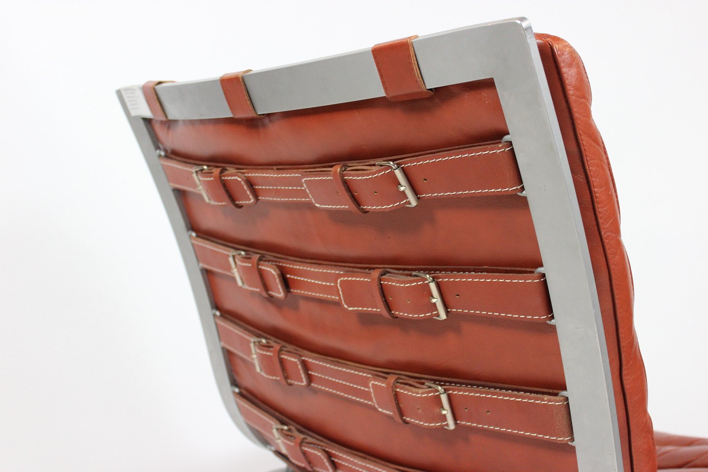 Easy chair, model Ariet, of red leather and steel frame by Arne Norell and Norell Furniture AB.