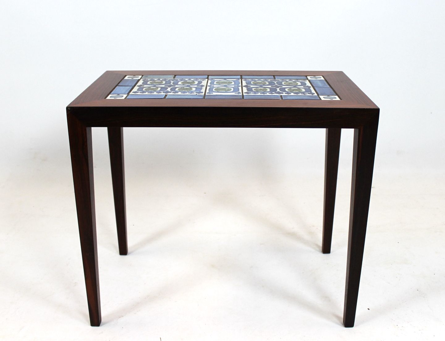SoldSide table of rosewood and dark blue tiles from Royal Copenhagen, designed by Severin Hansen for Haslev Furniture Factory from the 1960s.