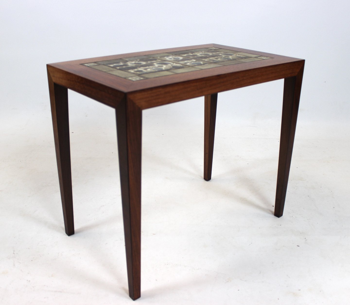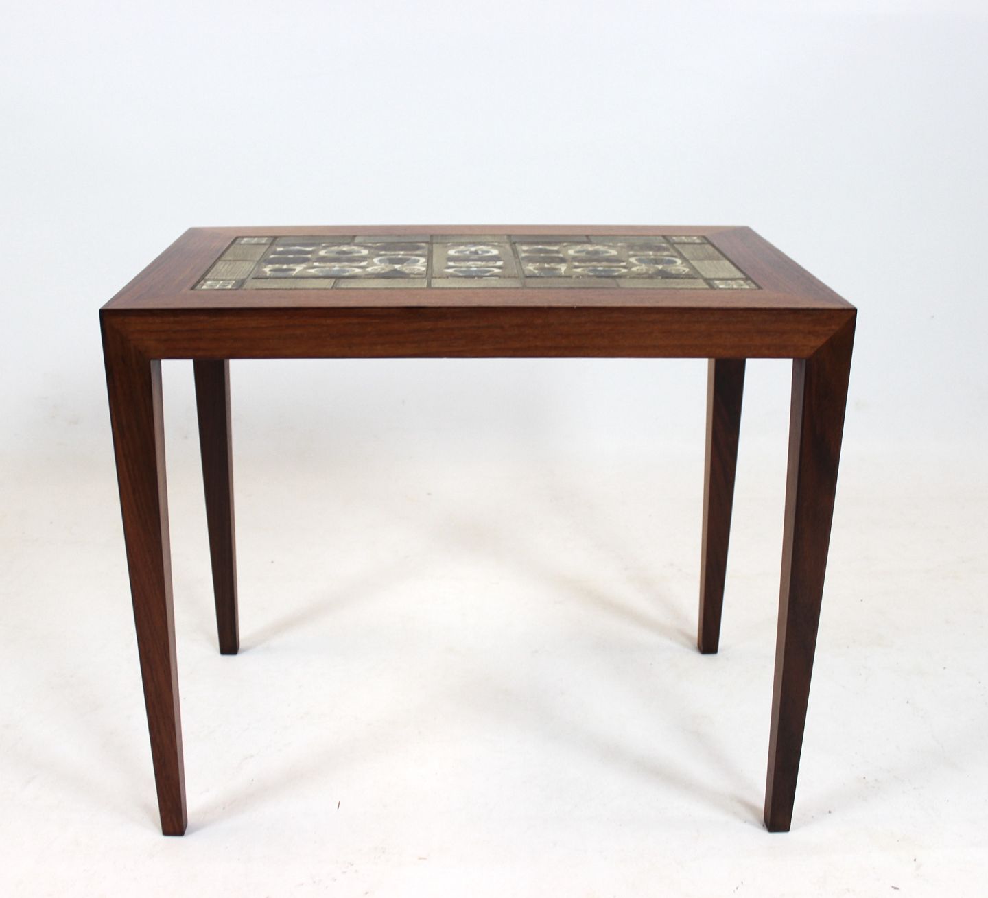 SoldSide table of rosewood and brown tiles from Royal Copenhagen, designed by Severin Hansen for Haslev Furniture Factory from the 1960s.