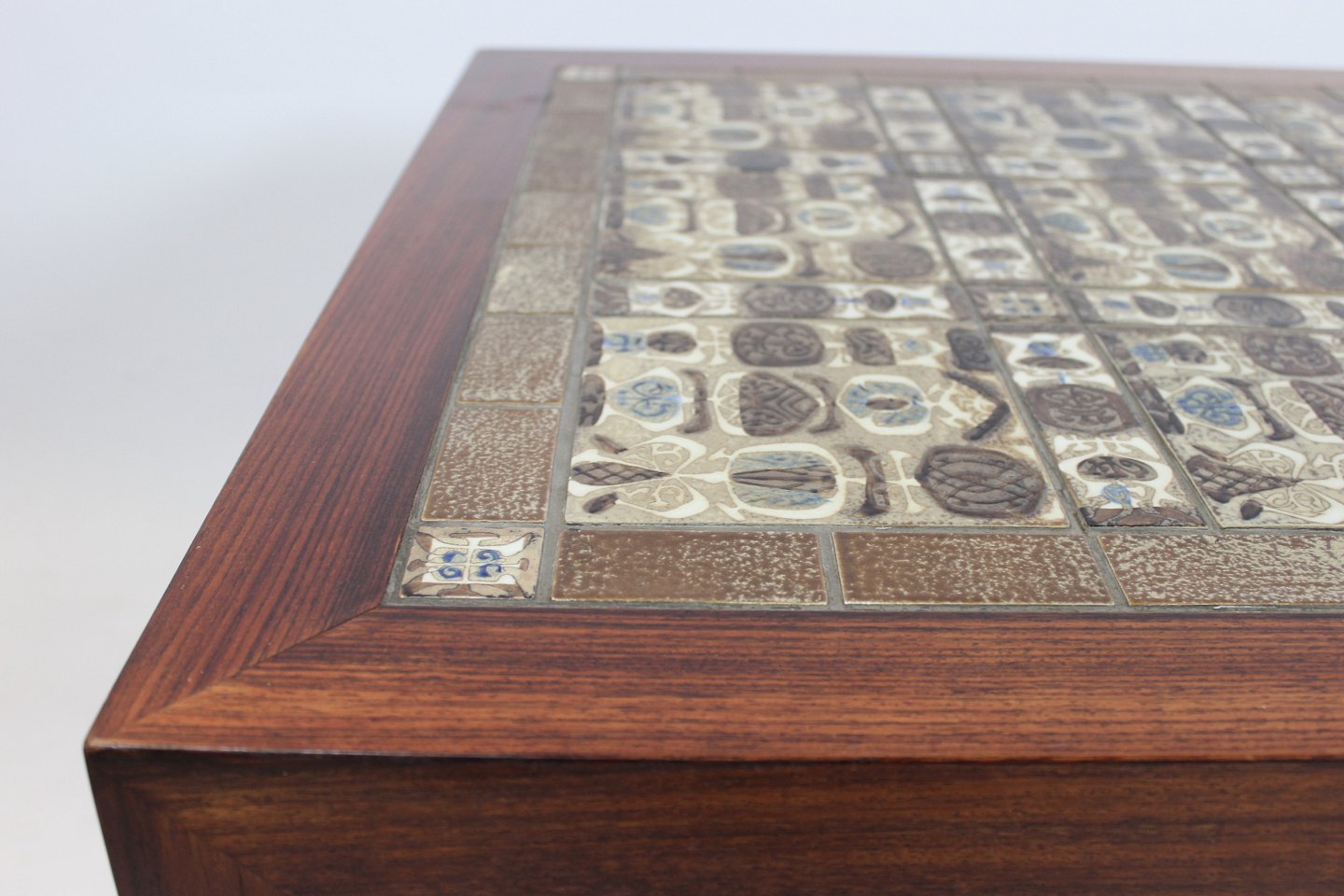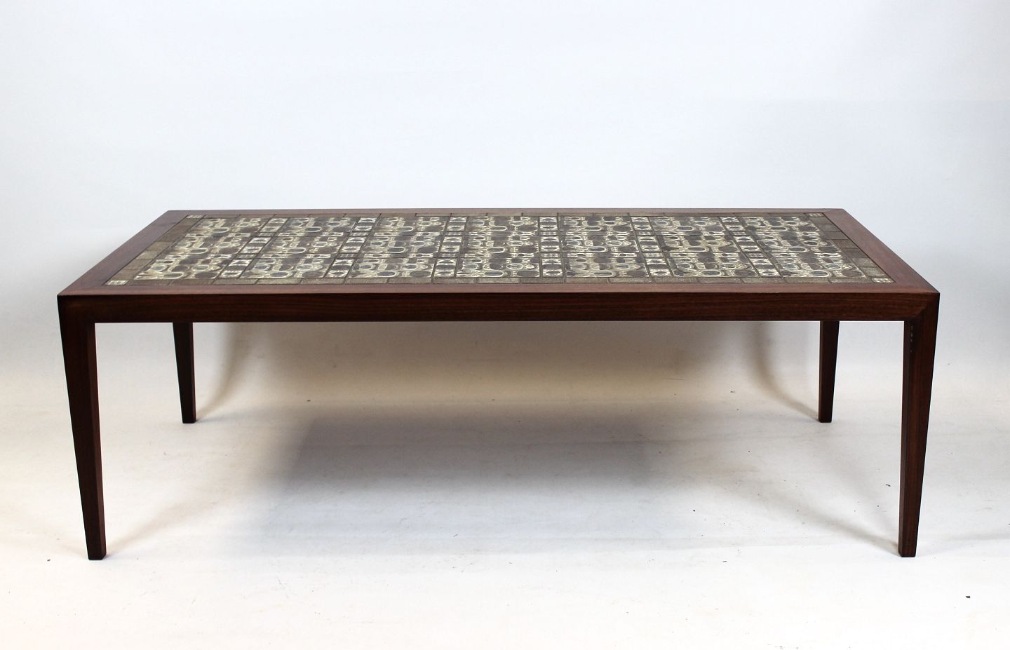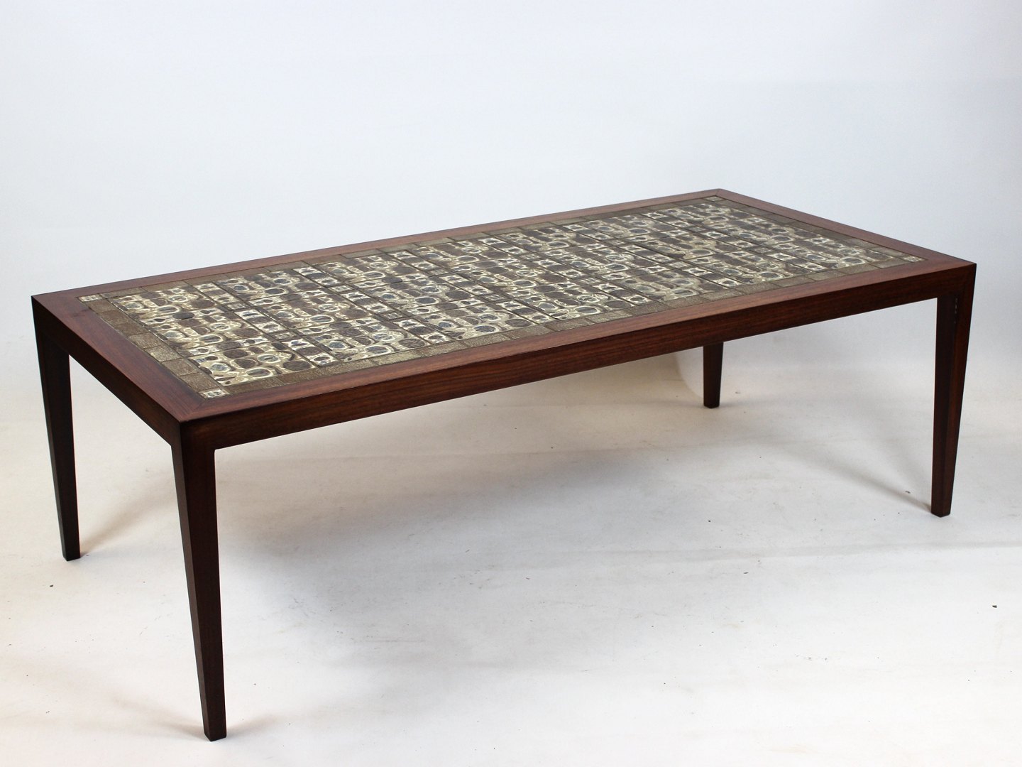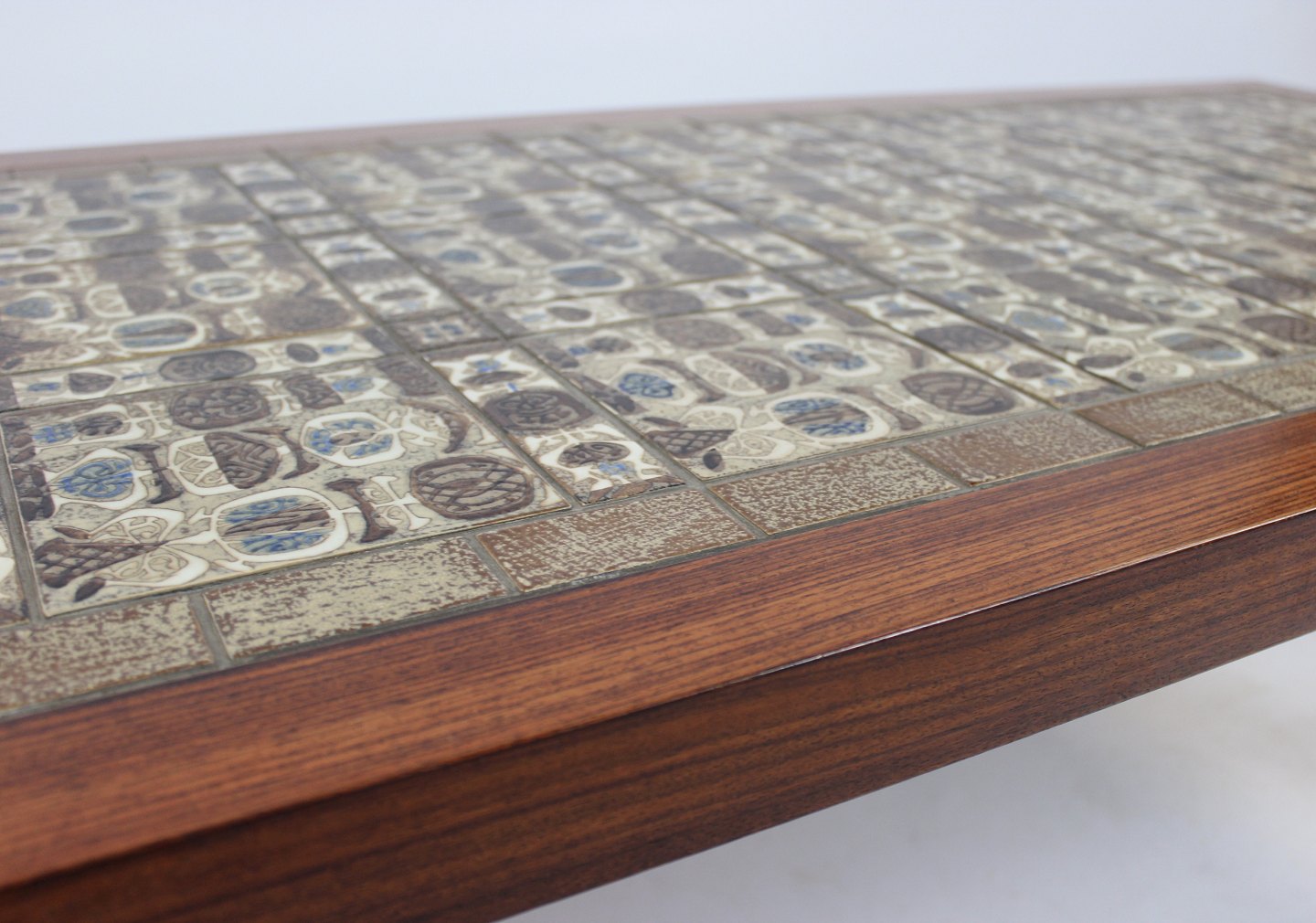 SoldCoffee table of rosewood and brown tiles from Royal Copenhagen, designed by Severin Hansen for Haslev Furniture Factory from the 1960s. The table is in great vintage condition.