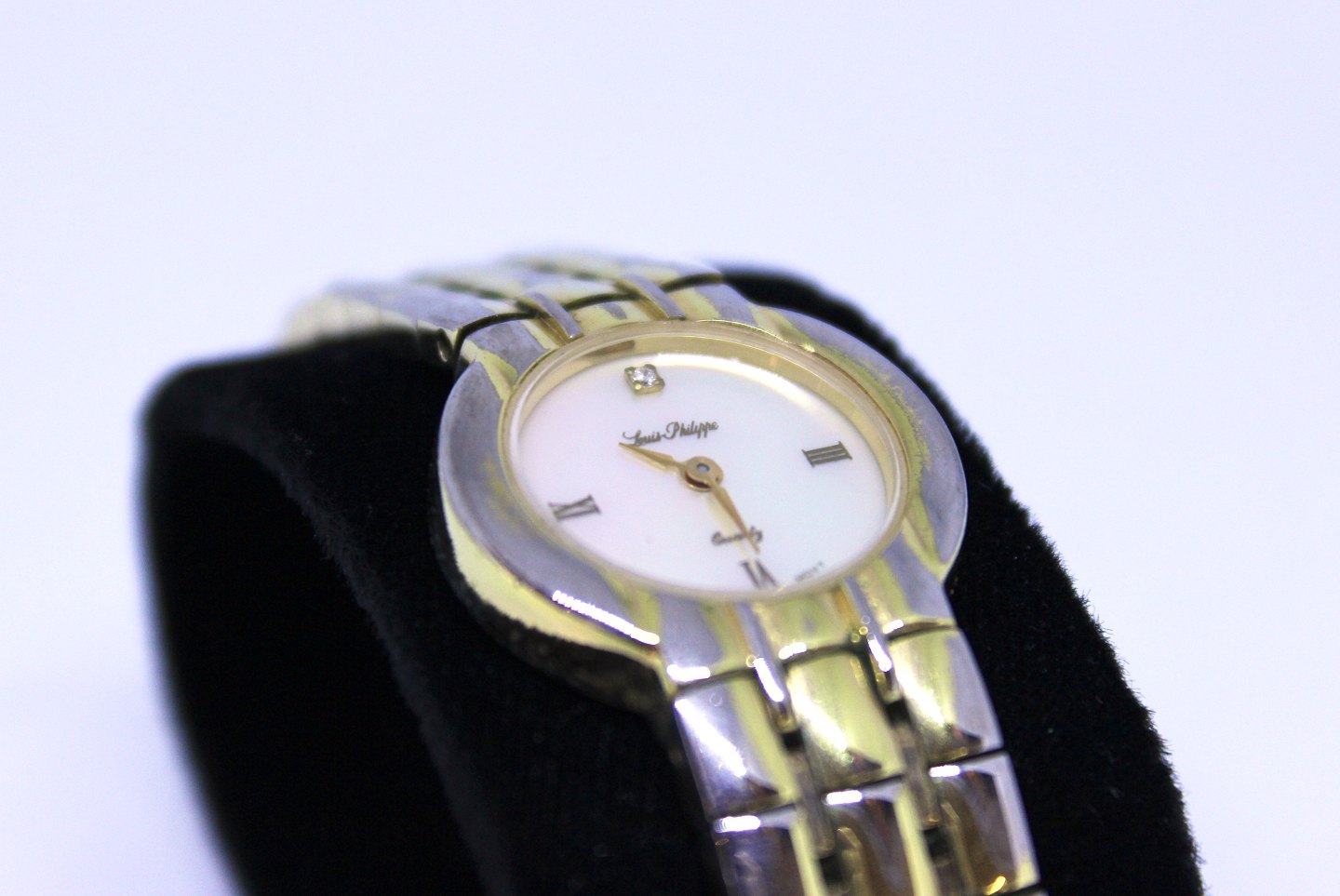 Louis Phillipe, Chauteu Blanc Limited wrist watch swiss made, quartz. The watch is gilded decorated with mother of pearl and clear stones.