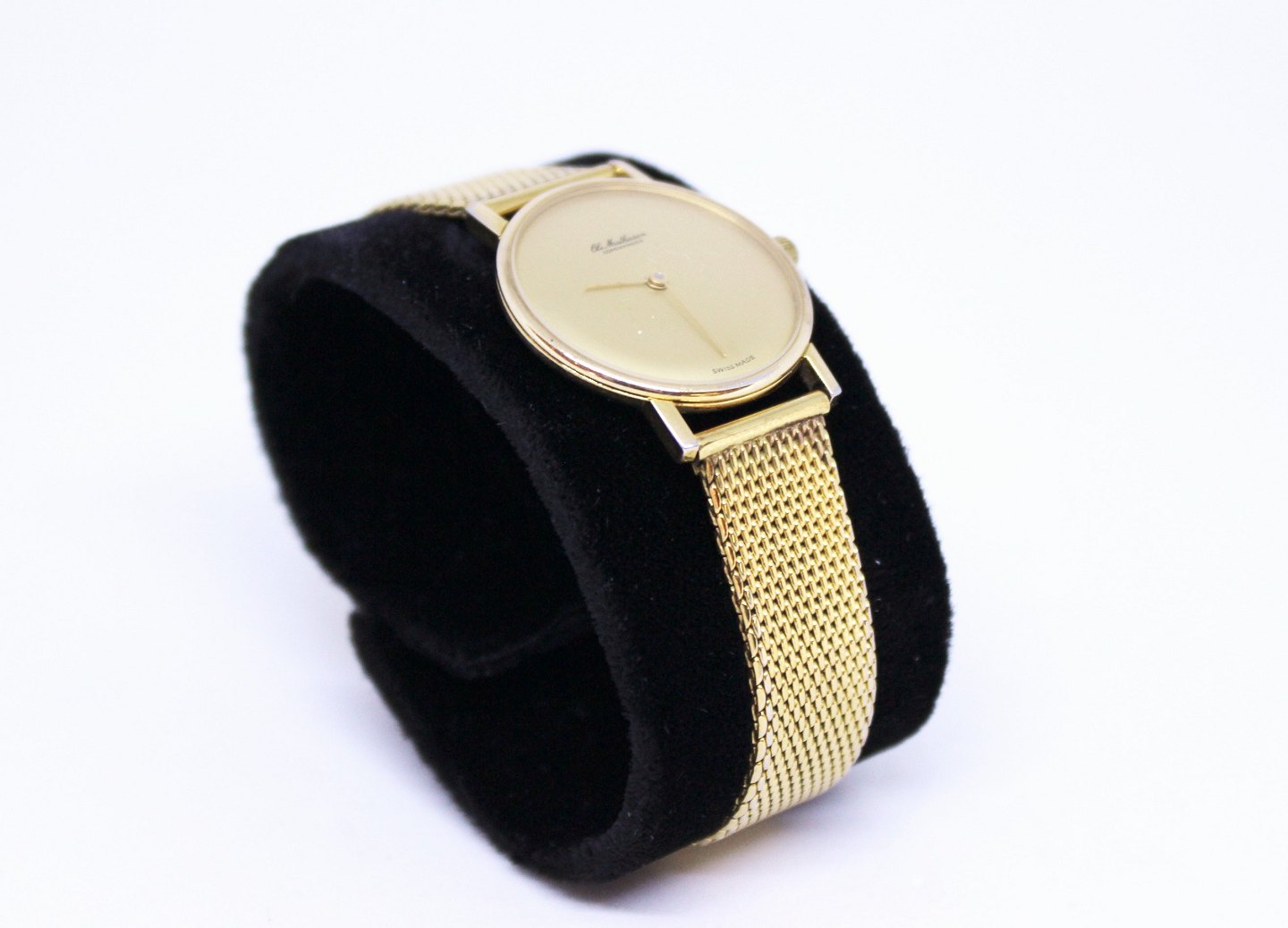 Ole Mathiesen, Copenhagen, classic armbåndsur med schweizisk urværk, quartz og 18 kt. forgyldt.