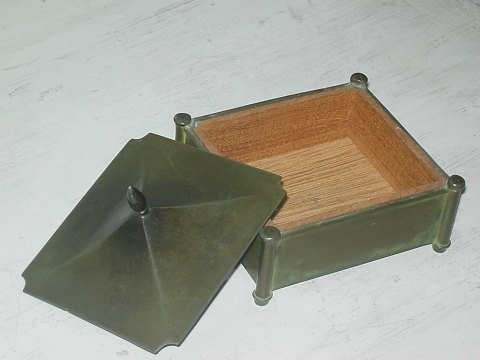 Aladin Lamp - 1400 kr., pot - 950 kr., jewelcase - 1200 kr. and candelstick - 550 kr. All the items are by Just Andersen and in diske metal. They are all in very good condition.