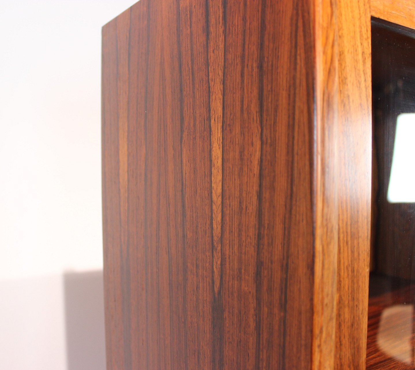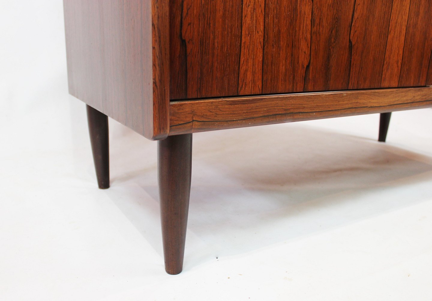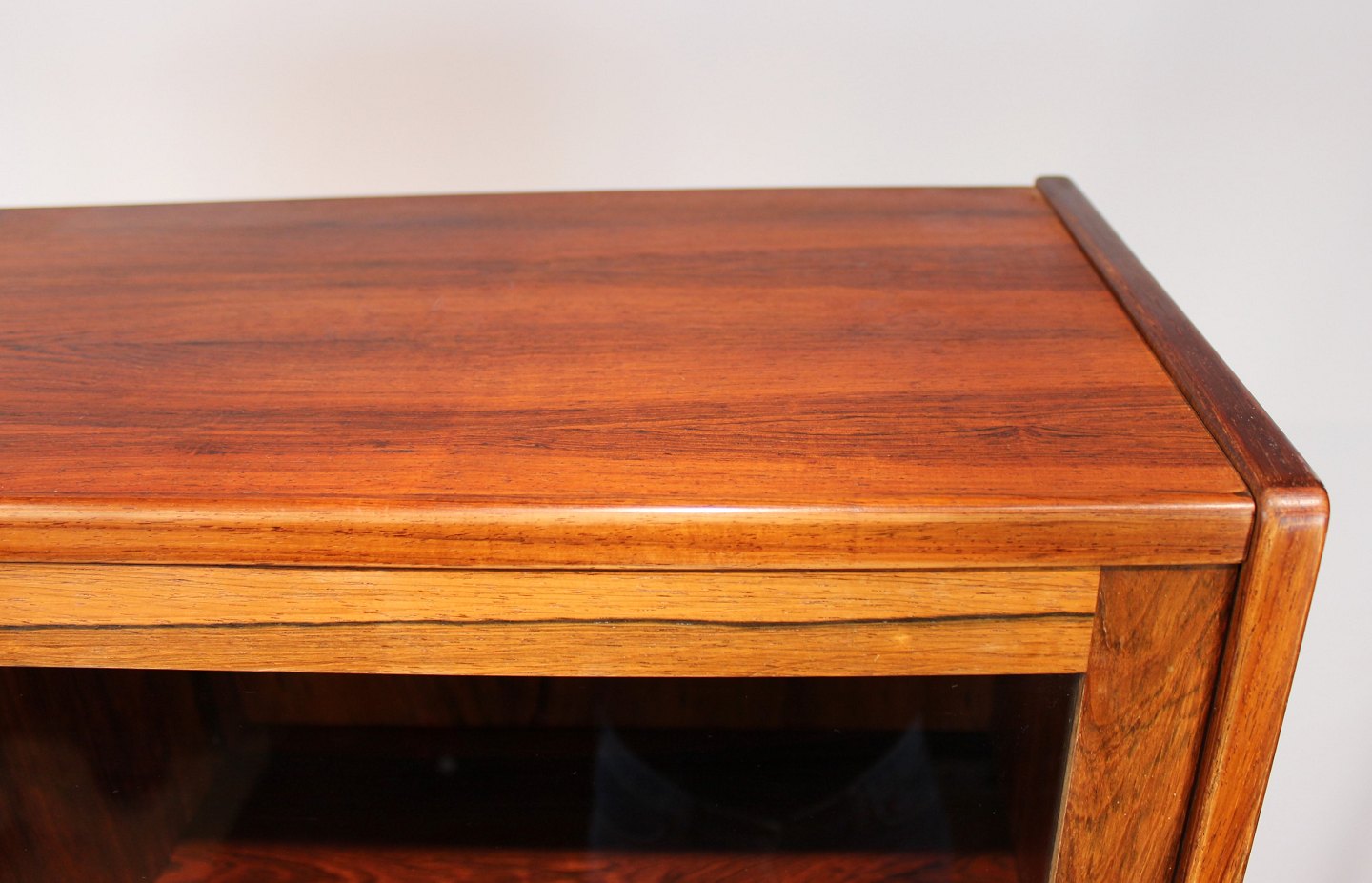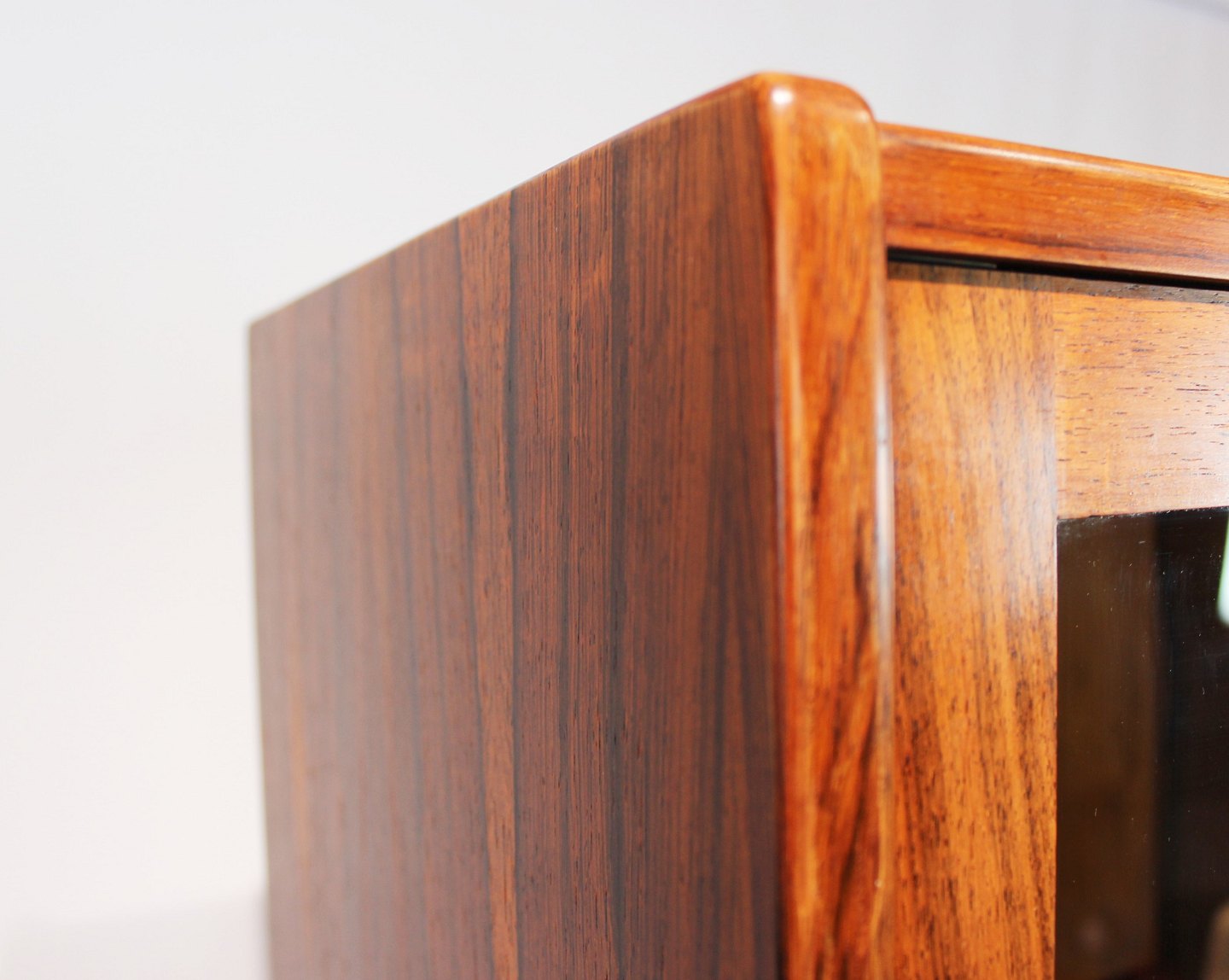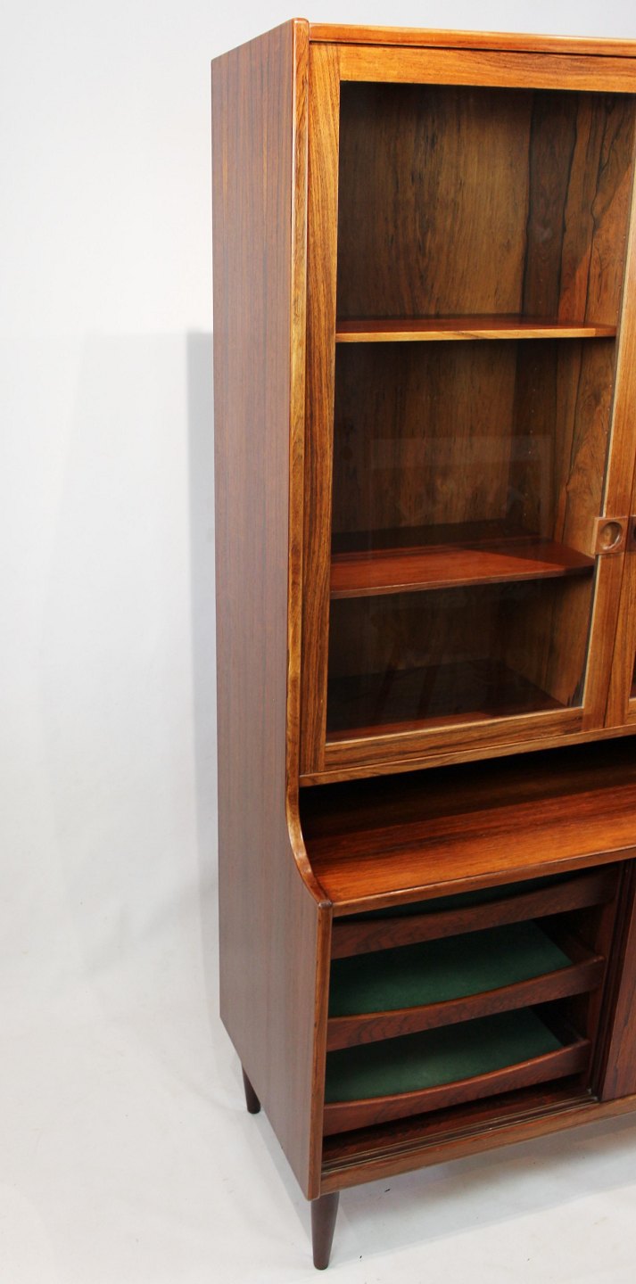 SoldThe display cabinet with glass doors and lower part with sliding doors in rosewood represents a period piece of Danish design from the 1960s.