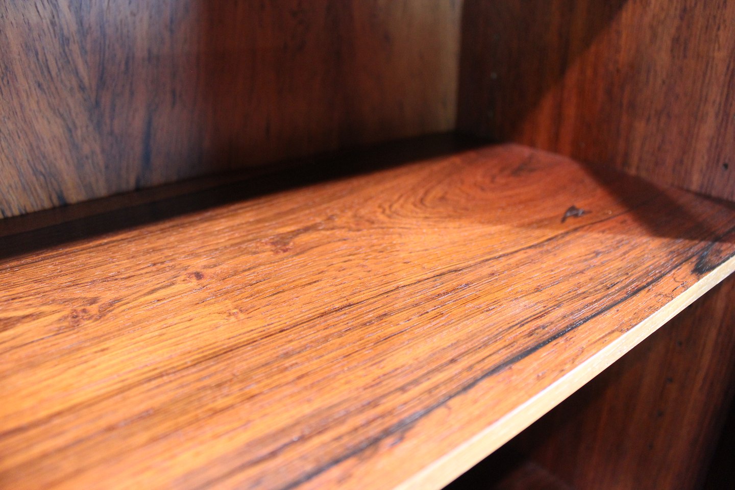 The beautiful rosewood and the elegant glass create a stylish combination that both emphasizes the cabinet's aesthetics and allows you to display objects or collectibles in an elegant way.
